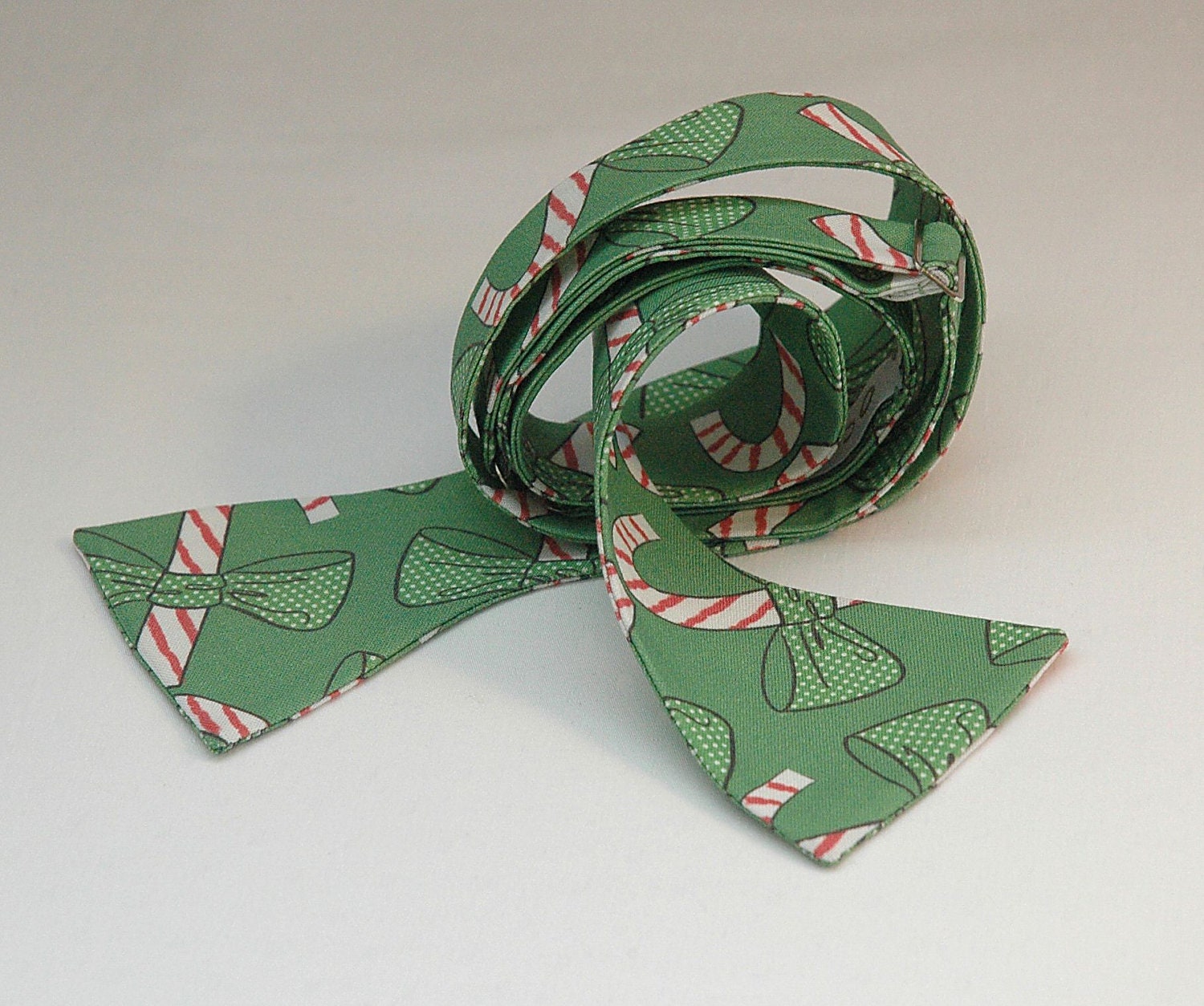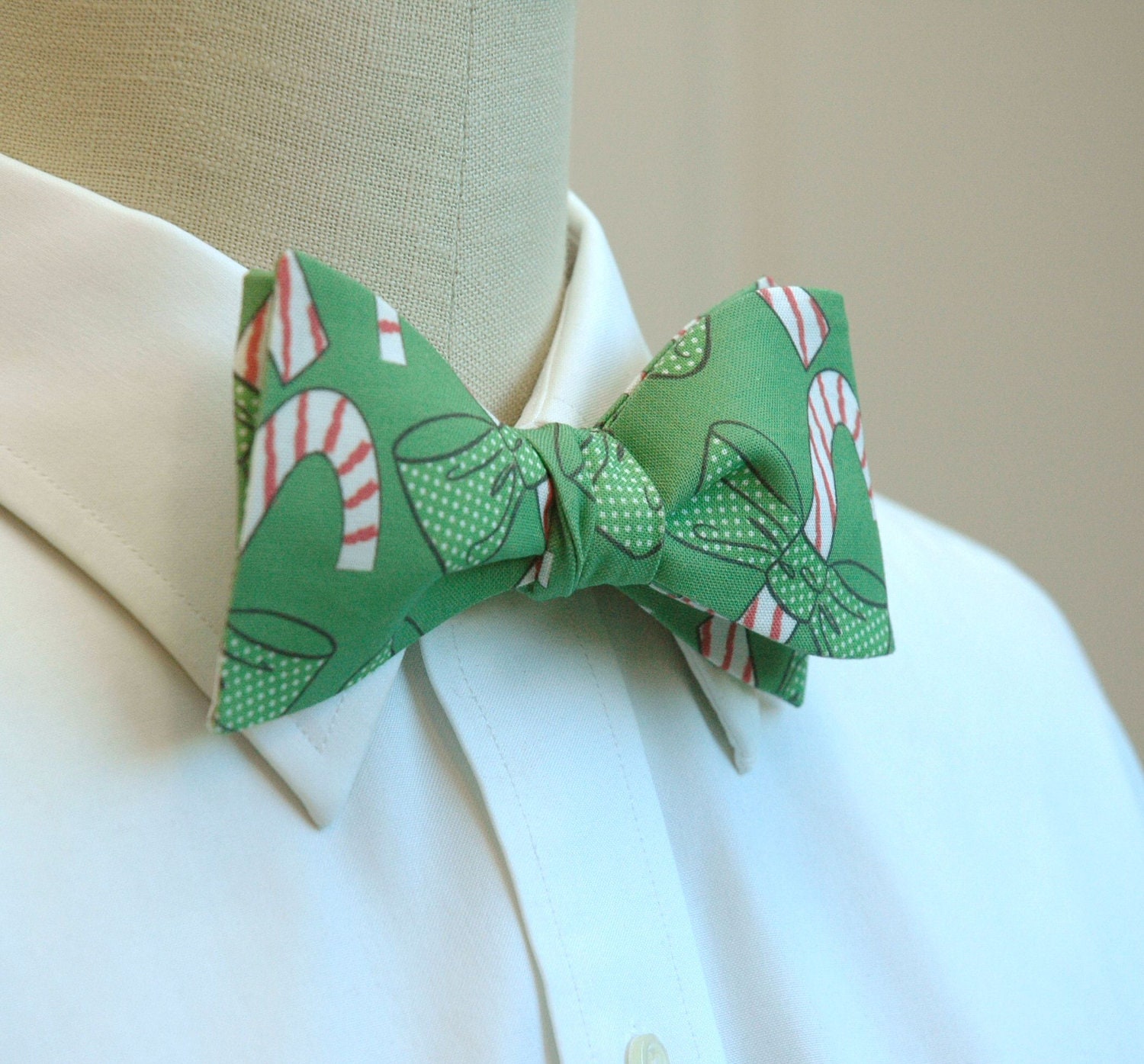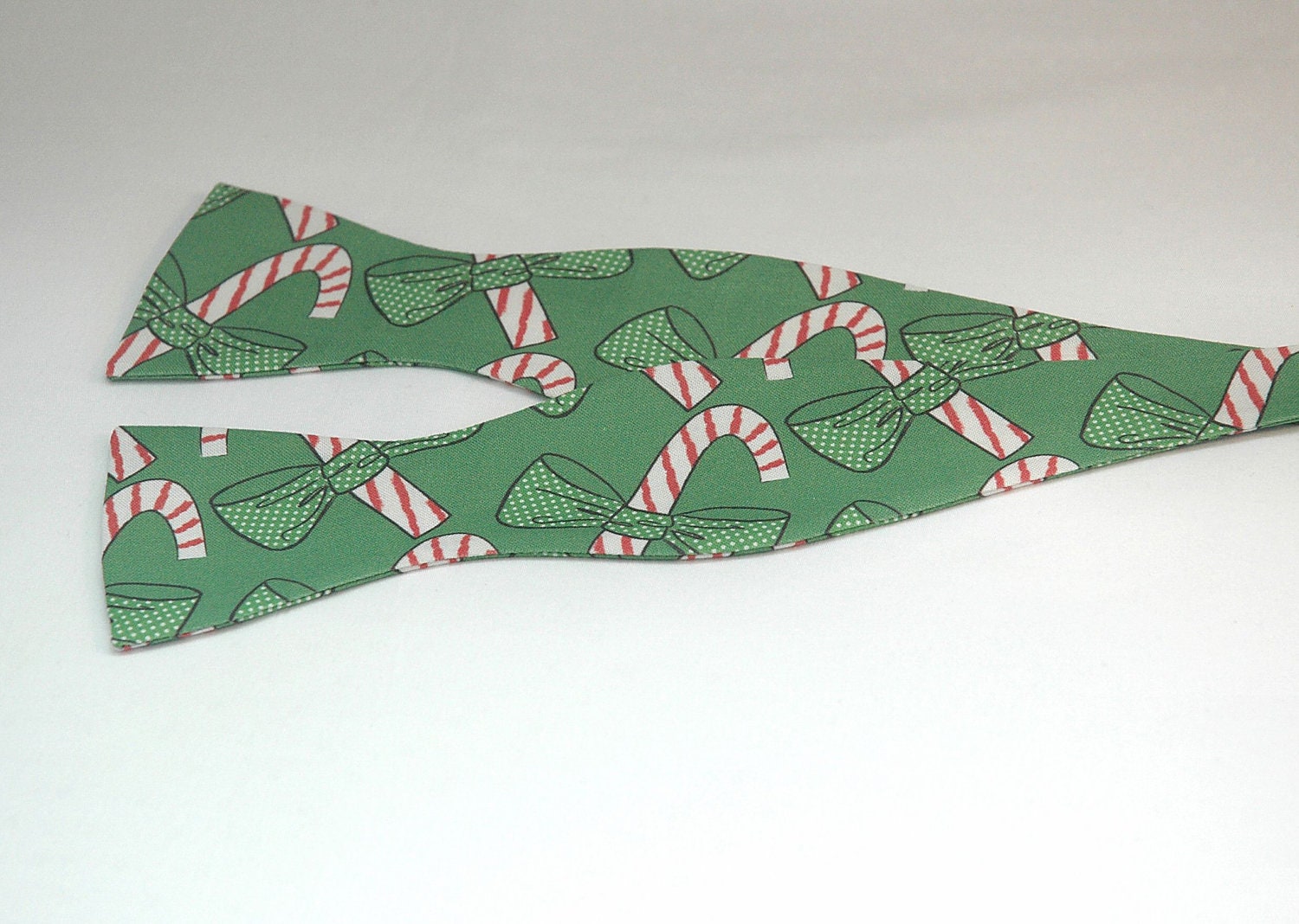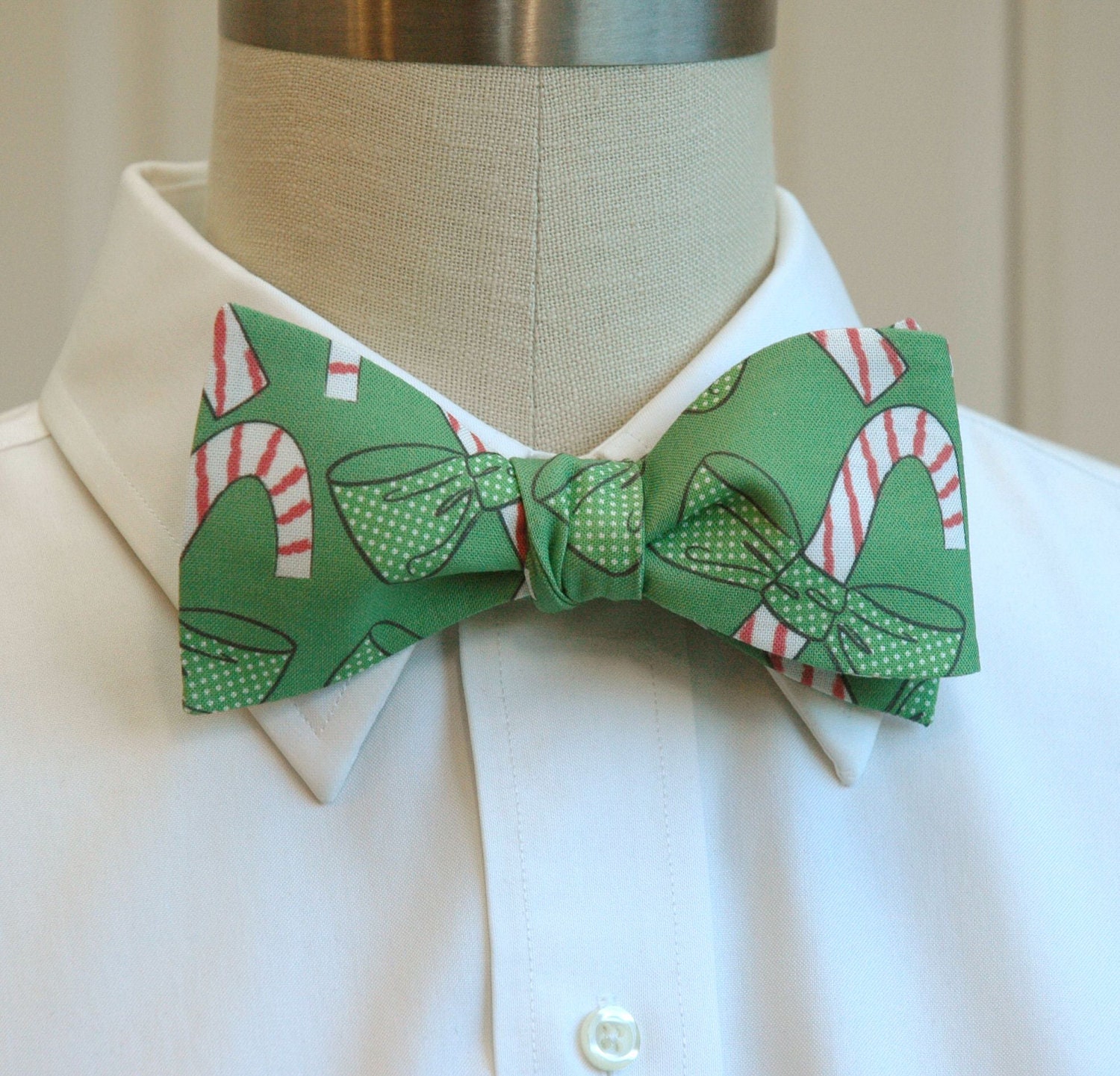 Bow Tie, holiday green bow tie, bows, red white candy canes, Christmas