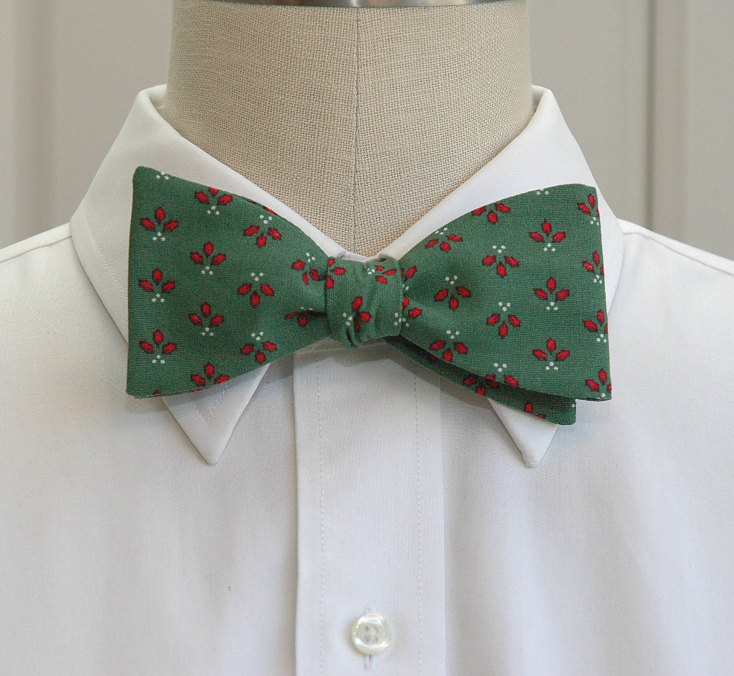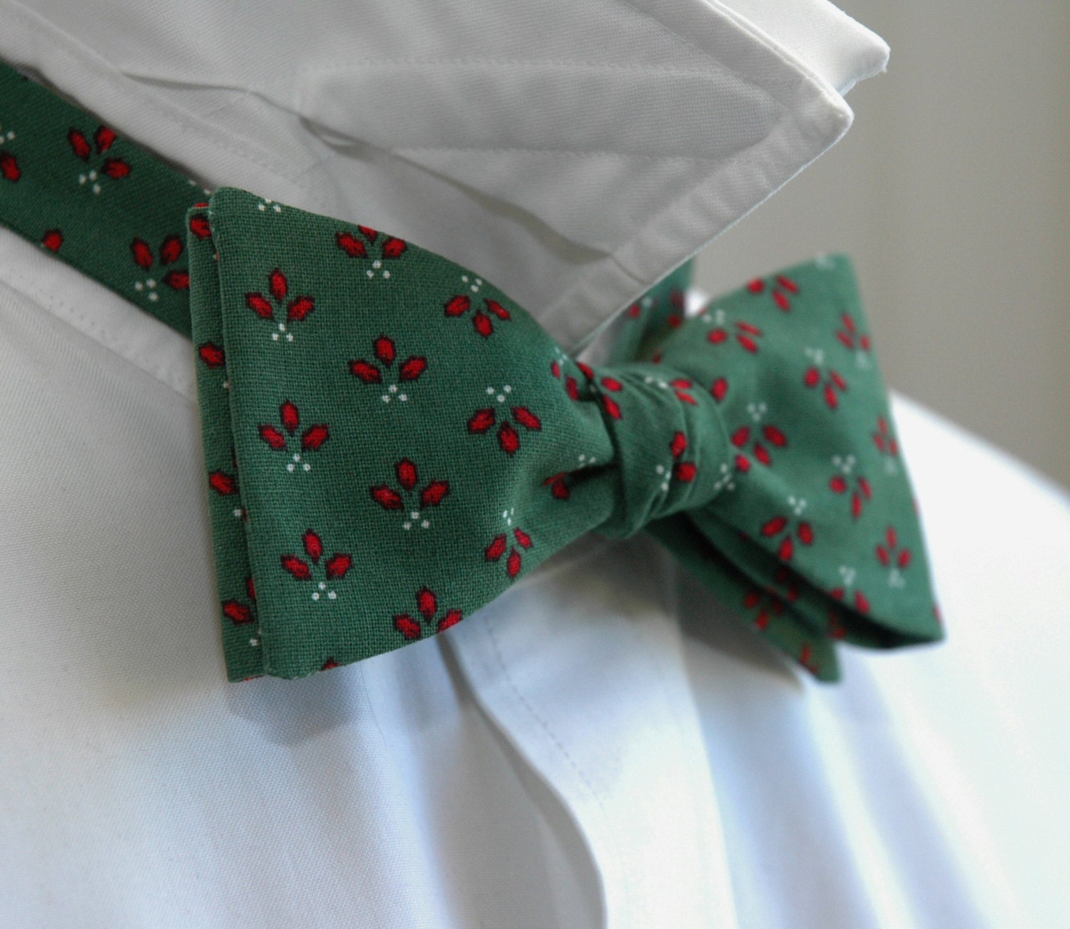 Bow Tie, Christmas green/holly berries, holiday bowtie