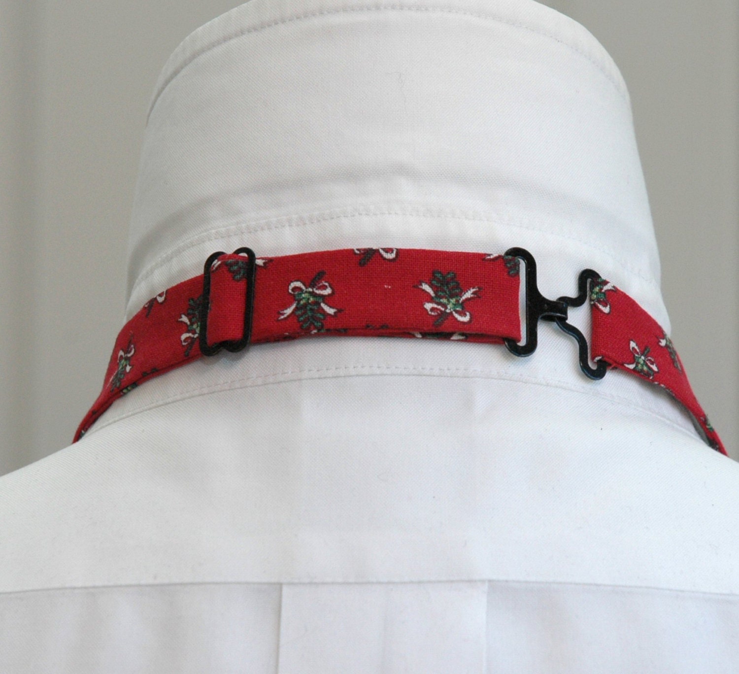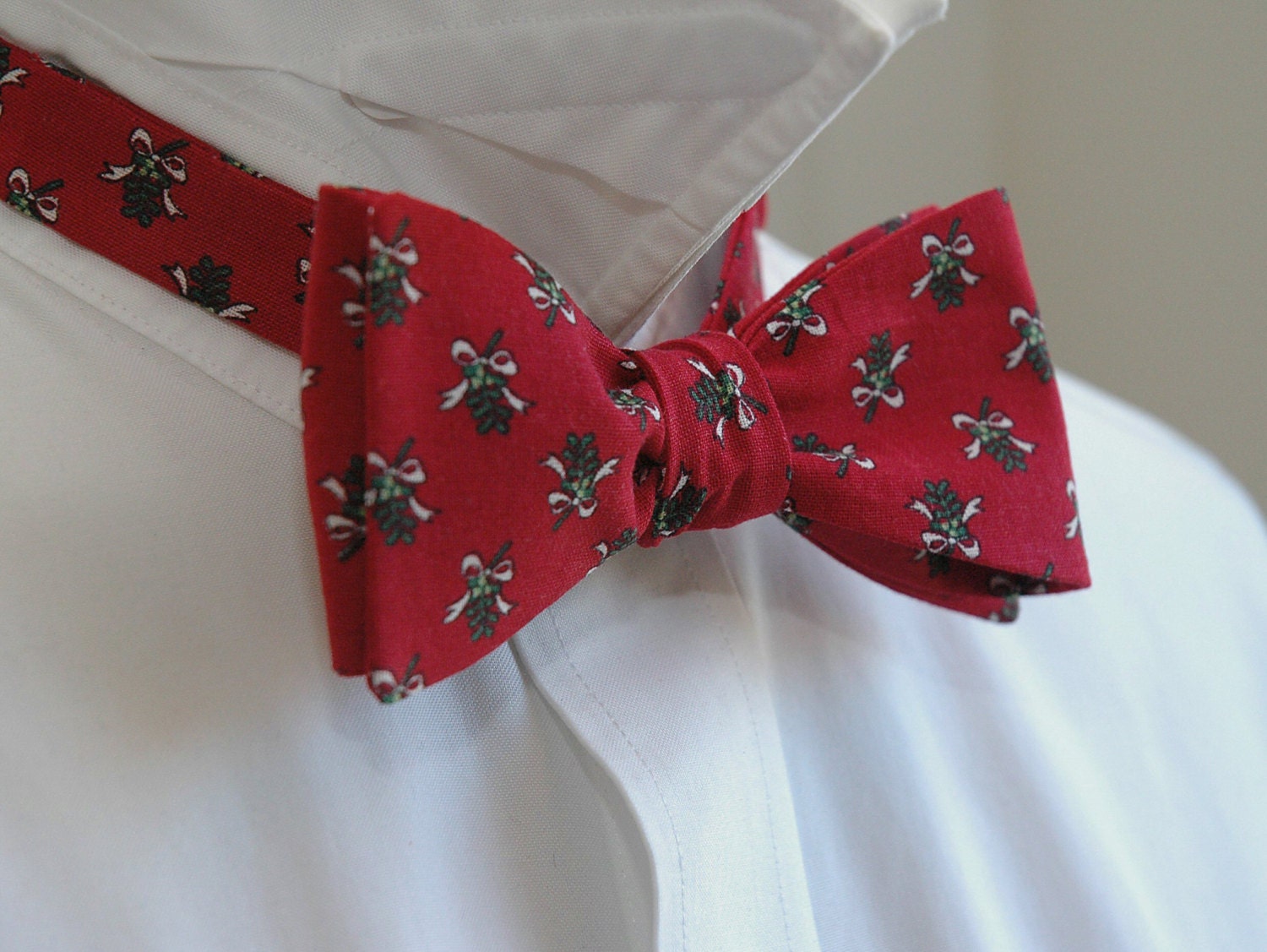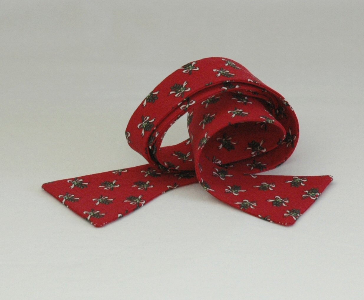 Bow Tie, Christmas red with green mistletoe, holiday bowtie