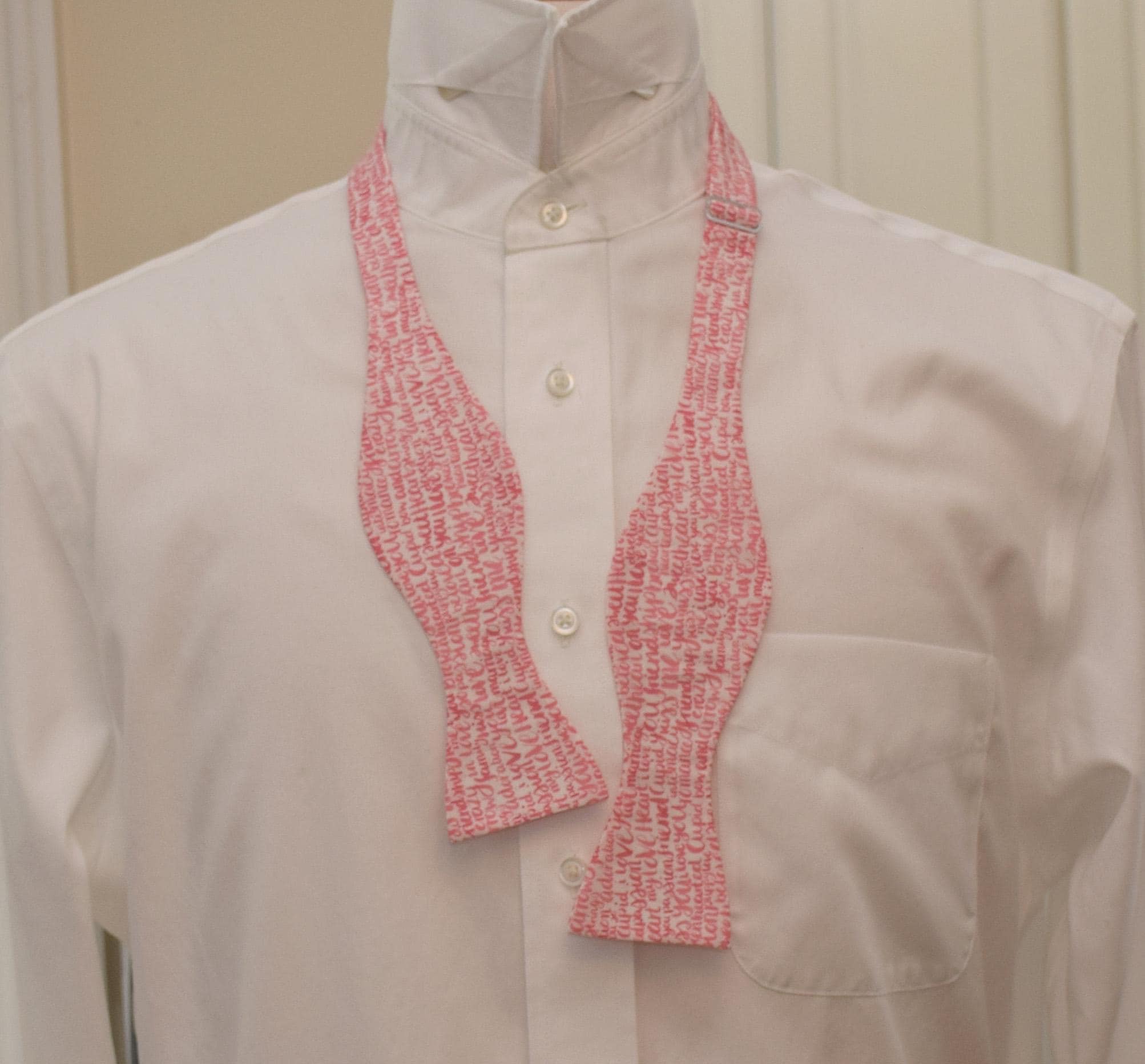 Bow Tie, Liberty of London Cupid, pink/ivory love letters writing print, wedding bow tie