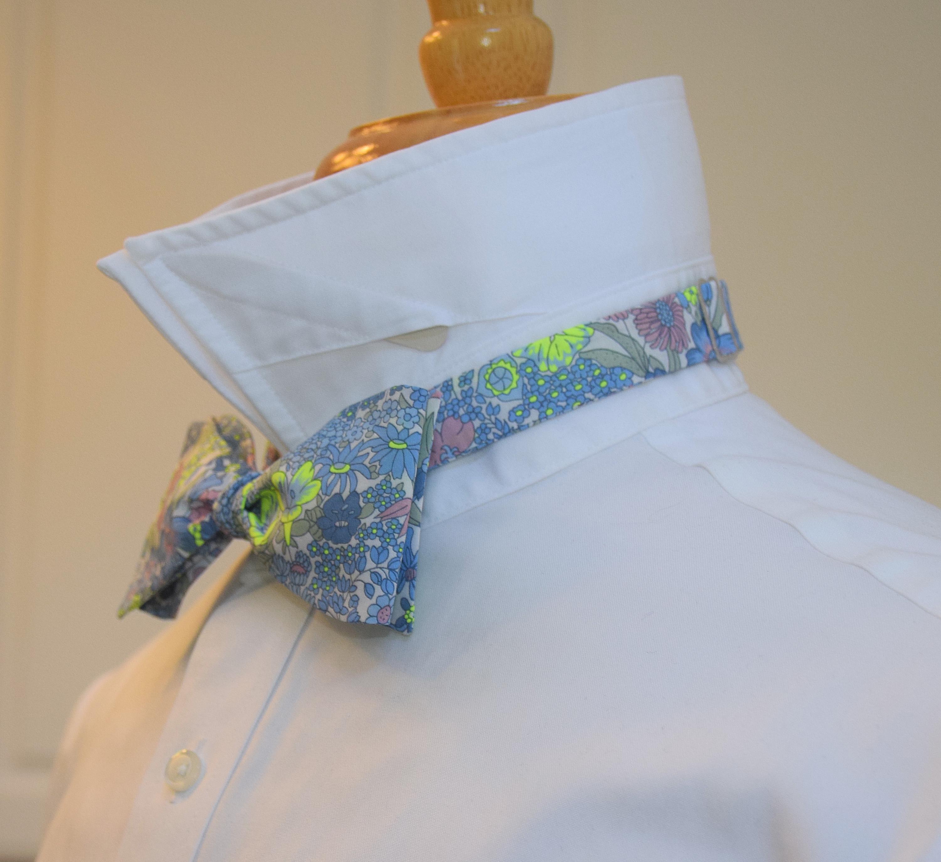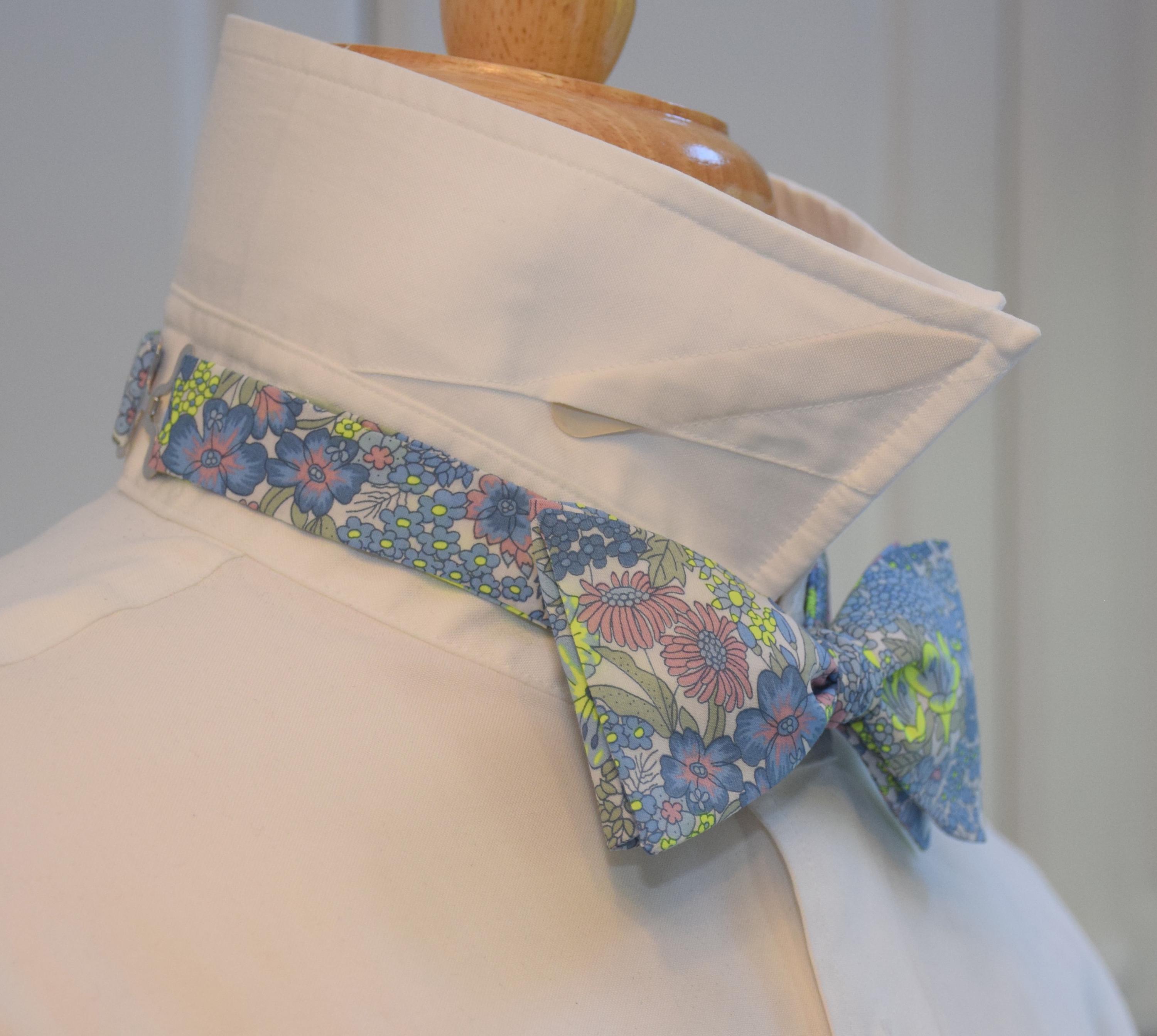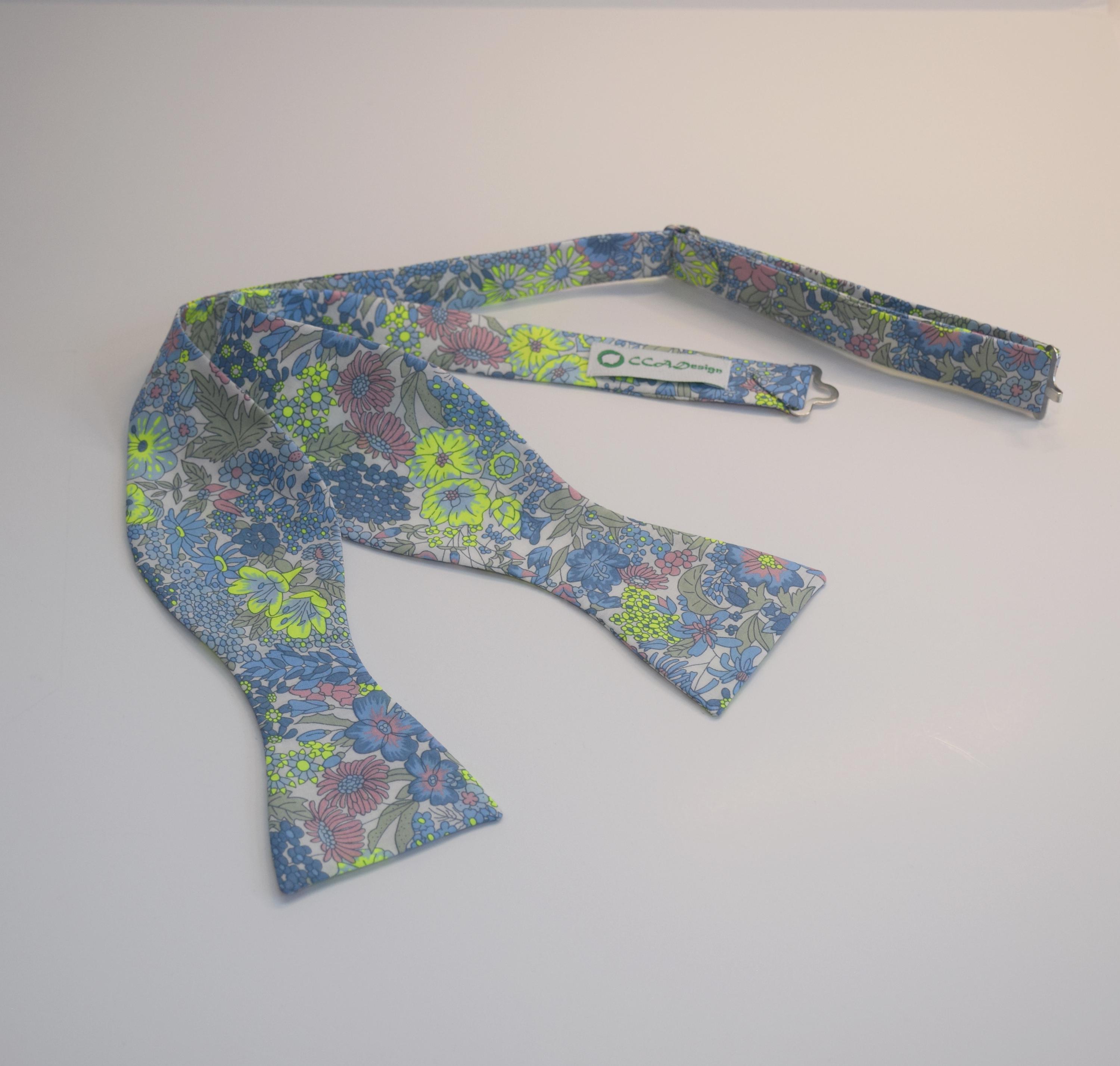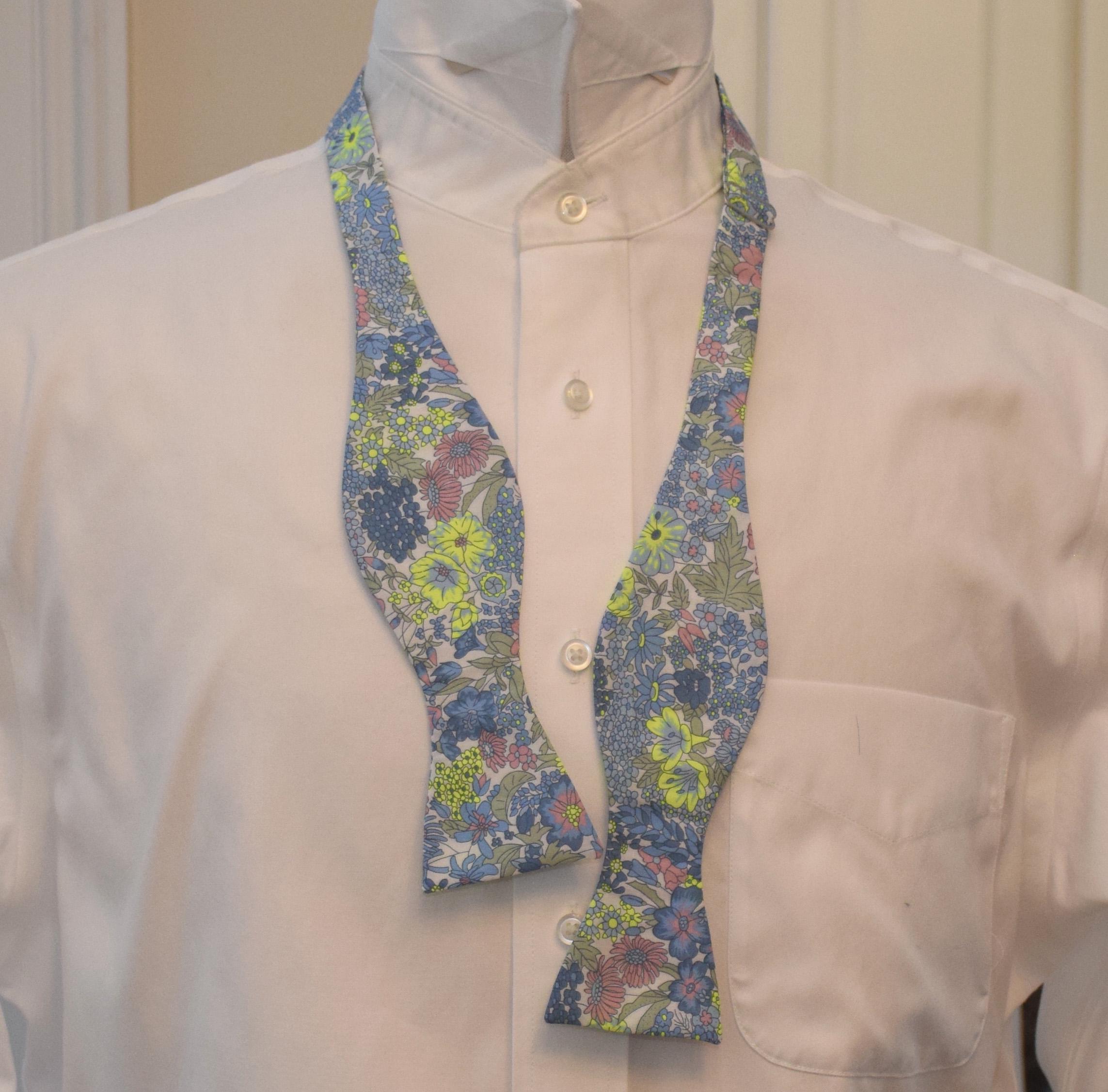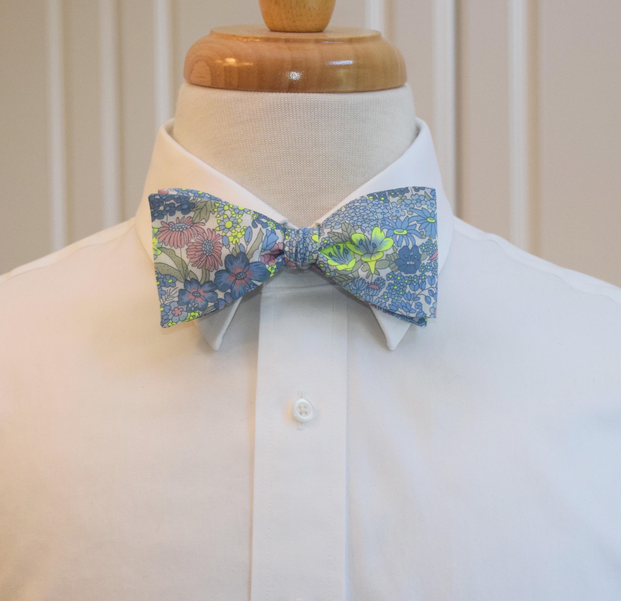 Liberty of London Bow Tie: Margaret Annie dusty blues/pink/neon Floral, Groom Groomsmen Accessory