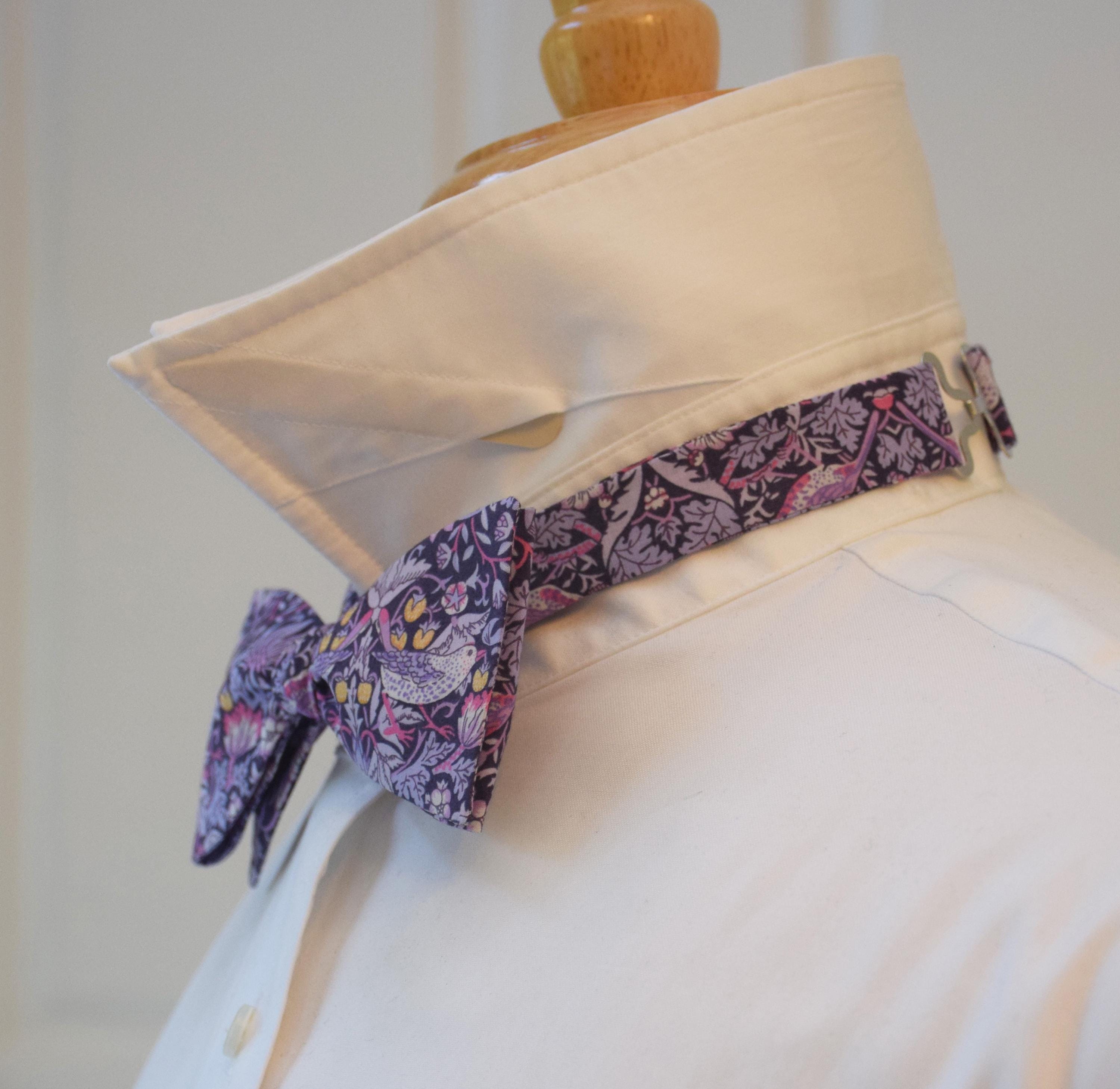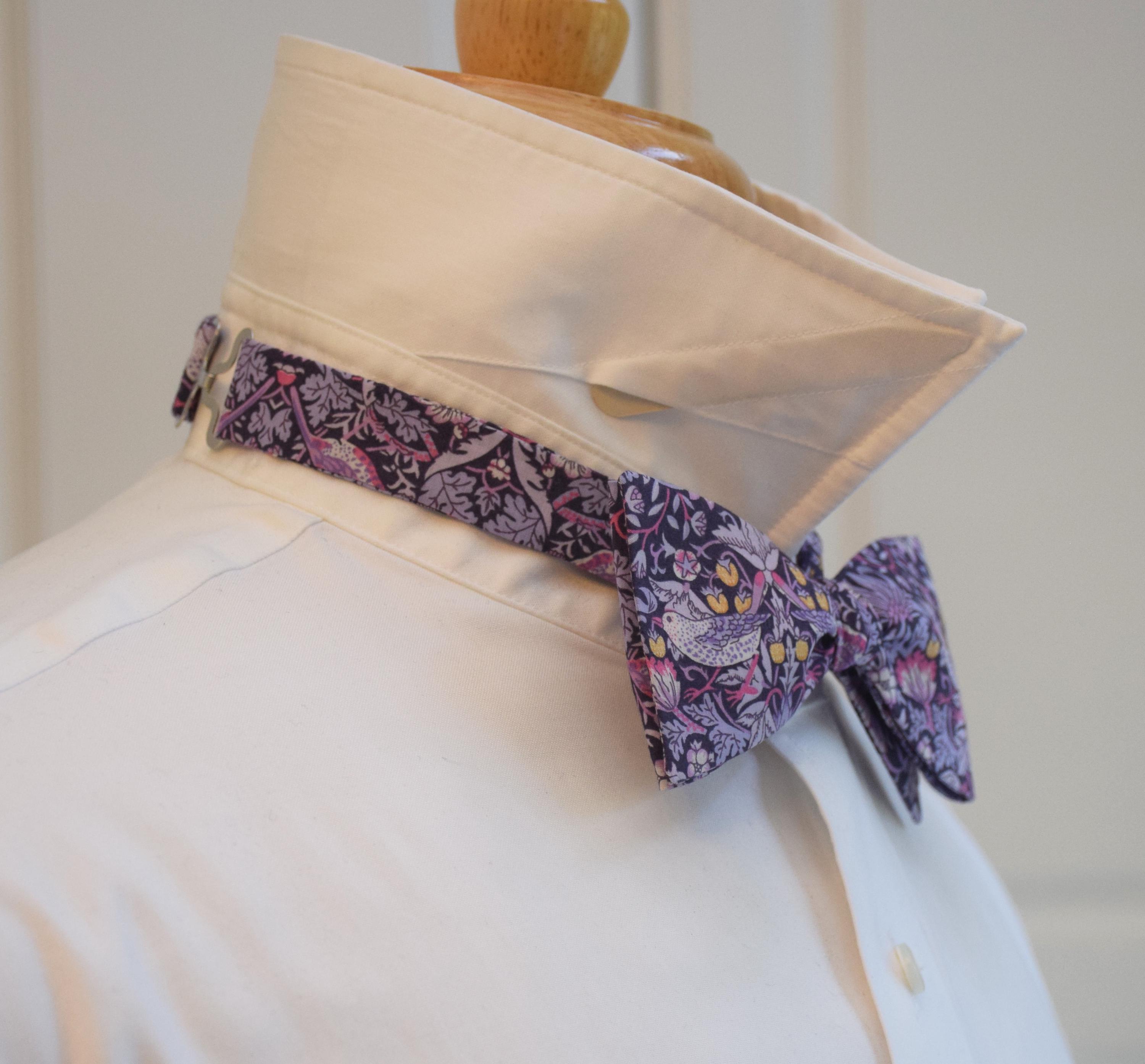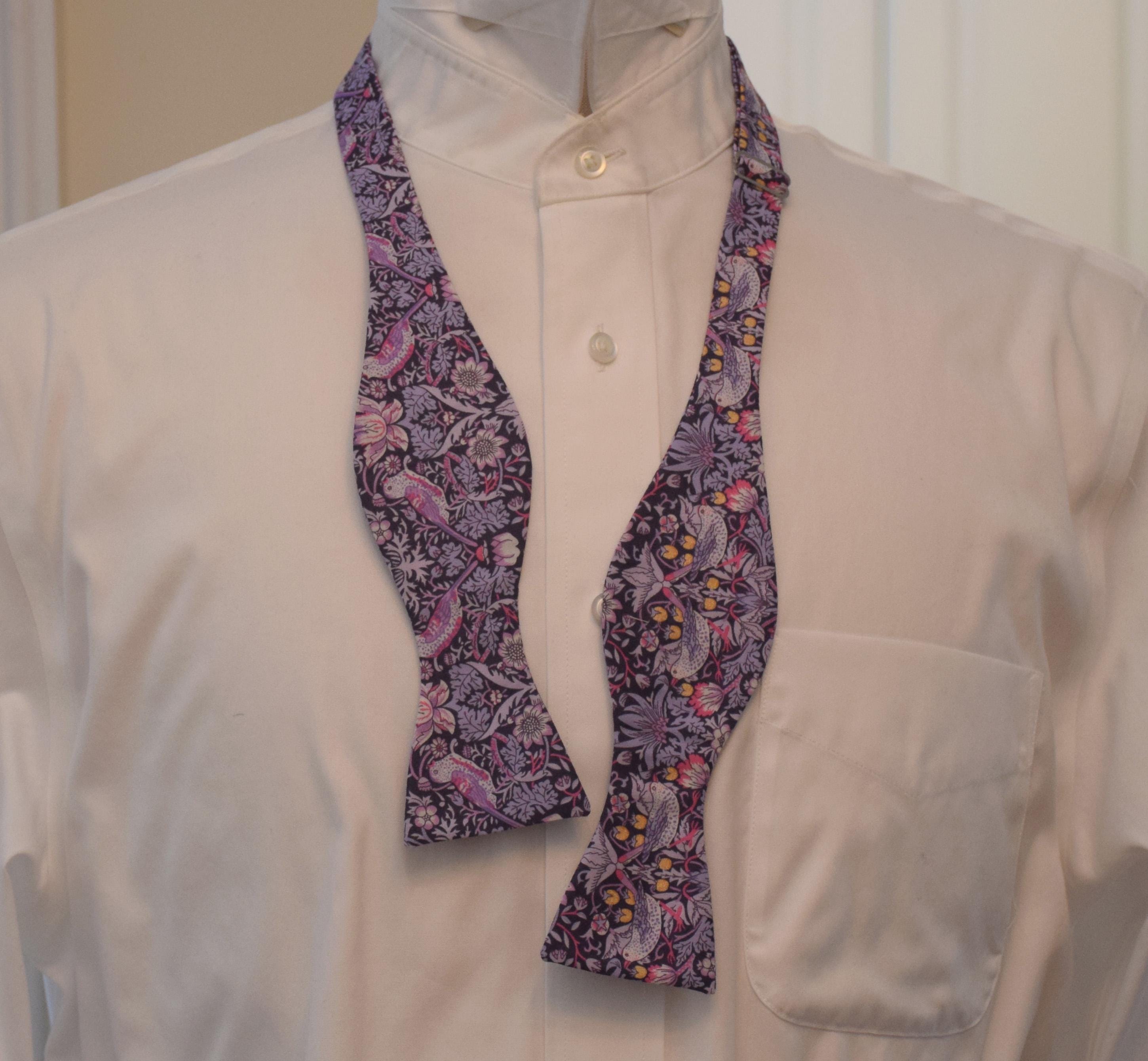 Liberty London Bow Tie: William Morris Strawberry Thief, amethyst, purples, hot pink with gold accents
