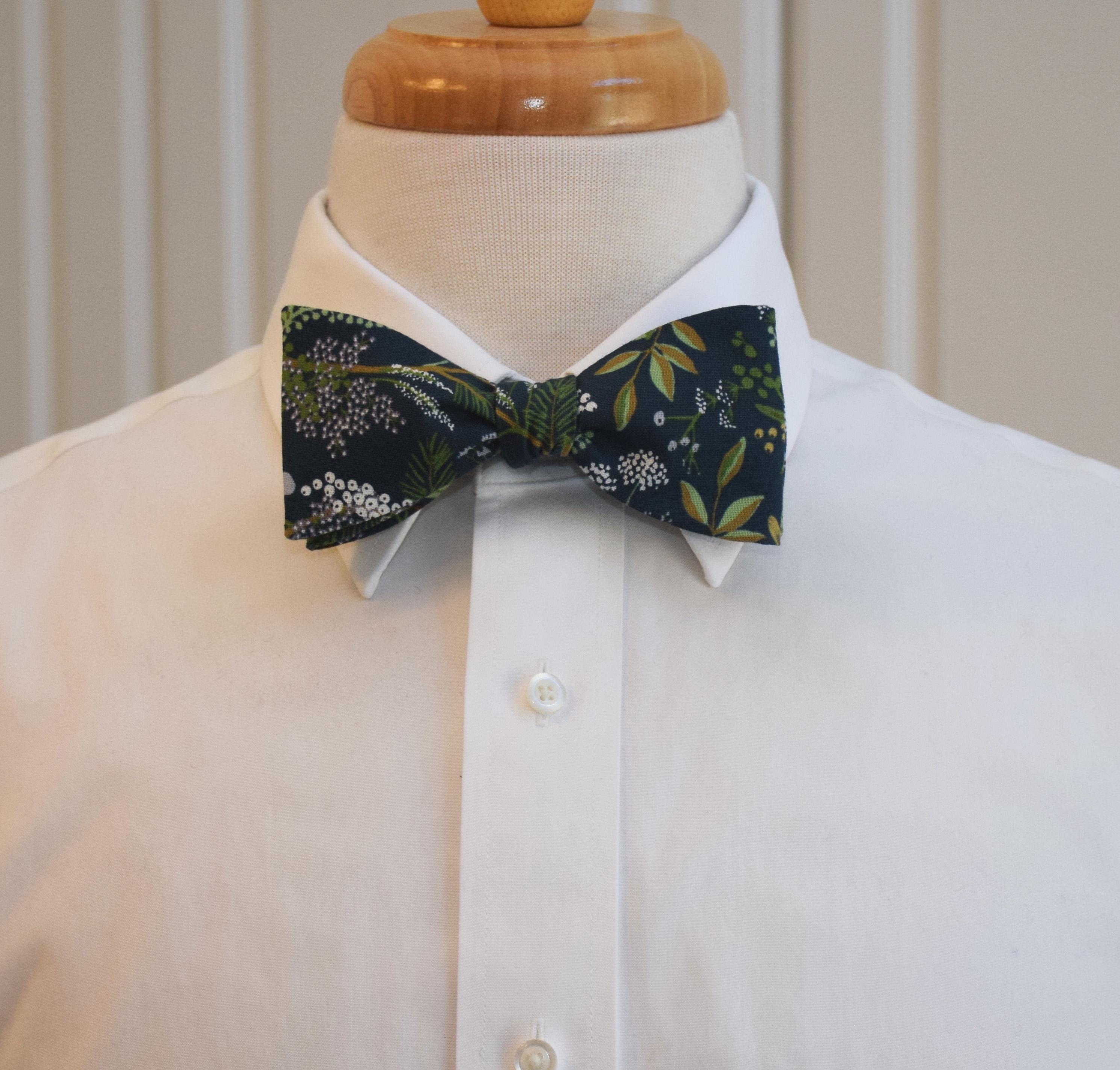 Floral Bow Tie: Rifle Paper Co. Evergreen Juniper Forest dark green print, wedding bowtie