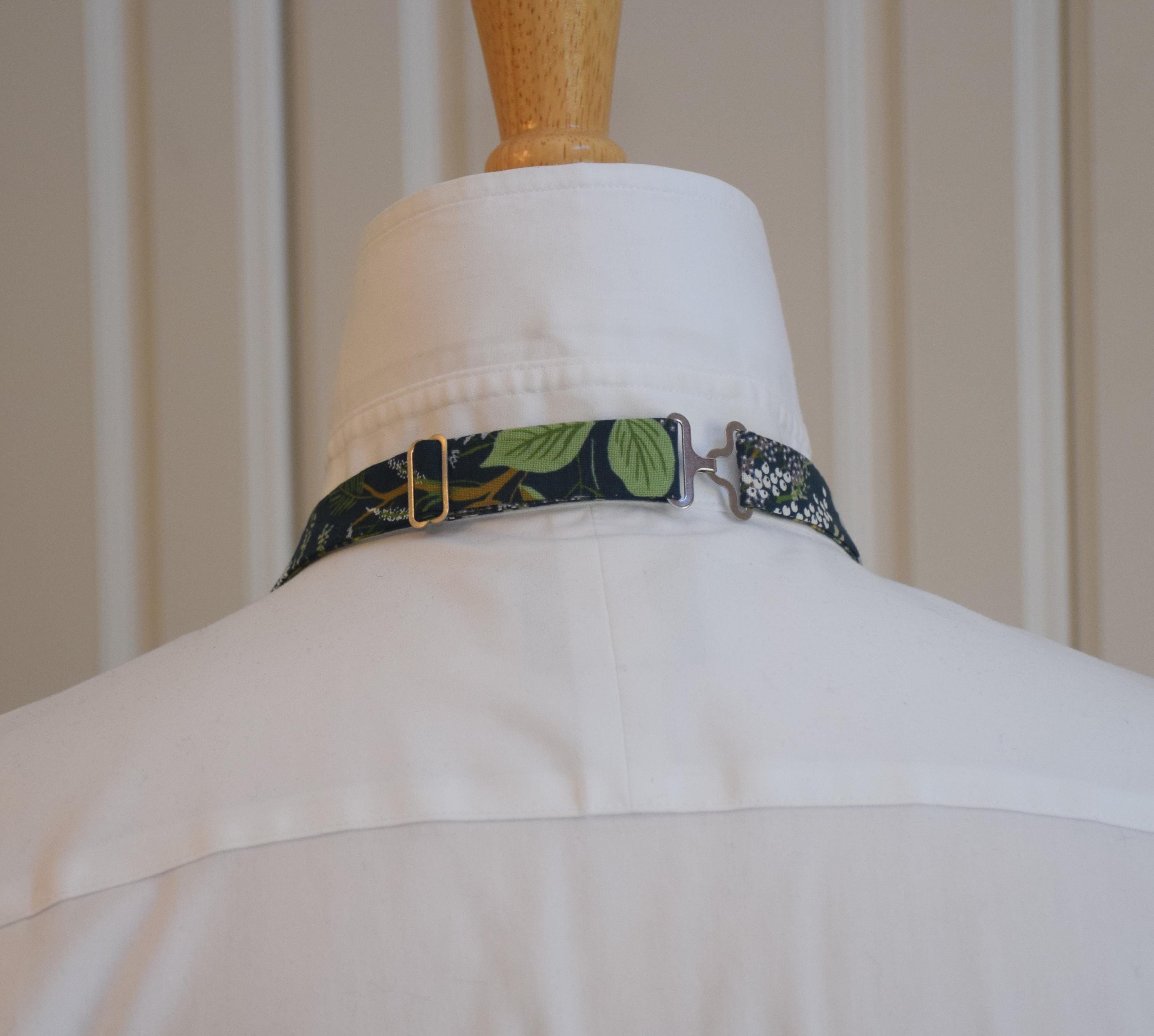 The 100% cotton self tie bow tie has a hook for easy removal that allows the tie to remain intact if you prefer not to tie it every time you wear it. Adjustable using the metal slider for neck sizes 14.5 - 19.5 inches.