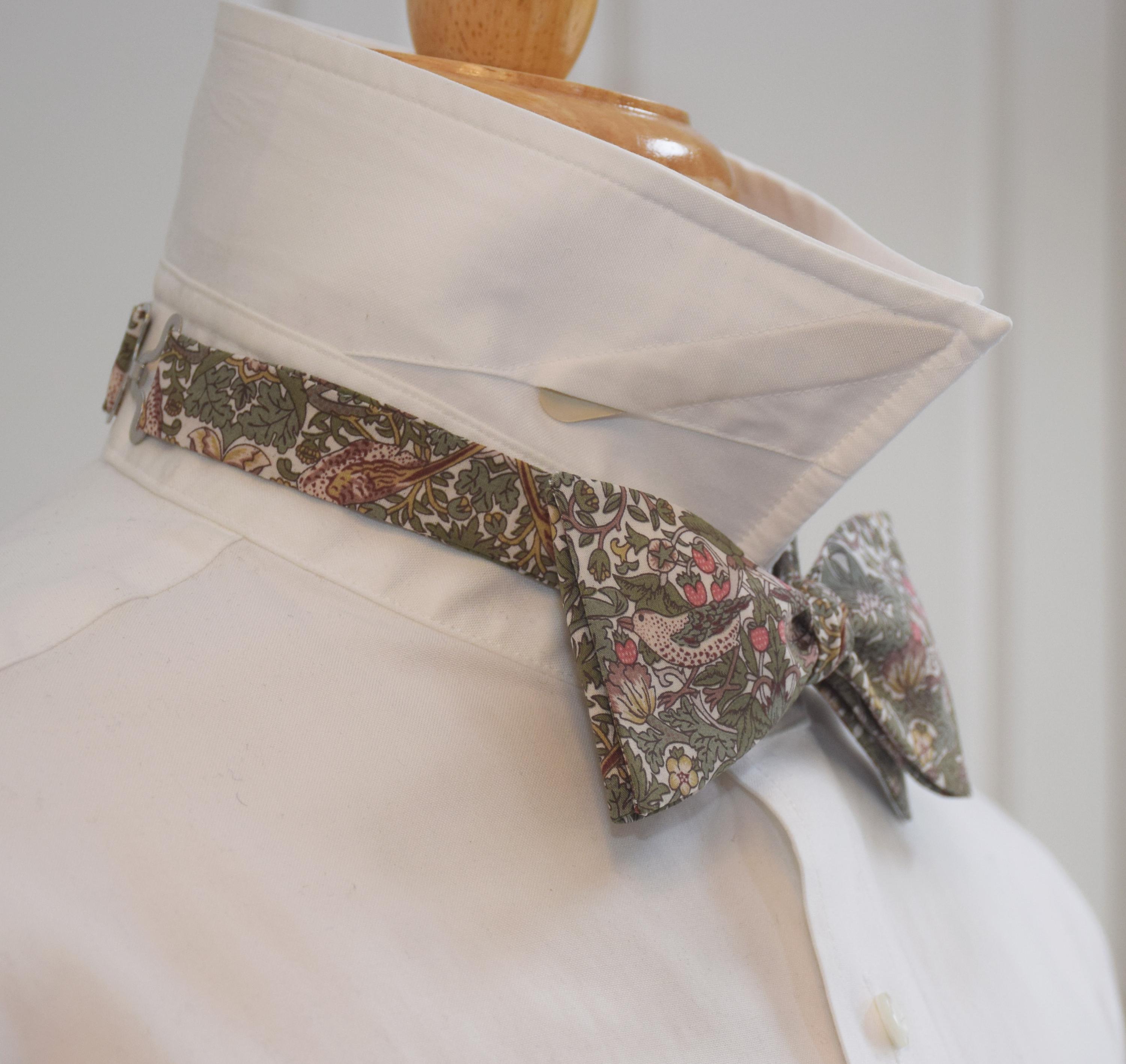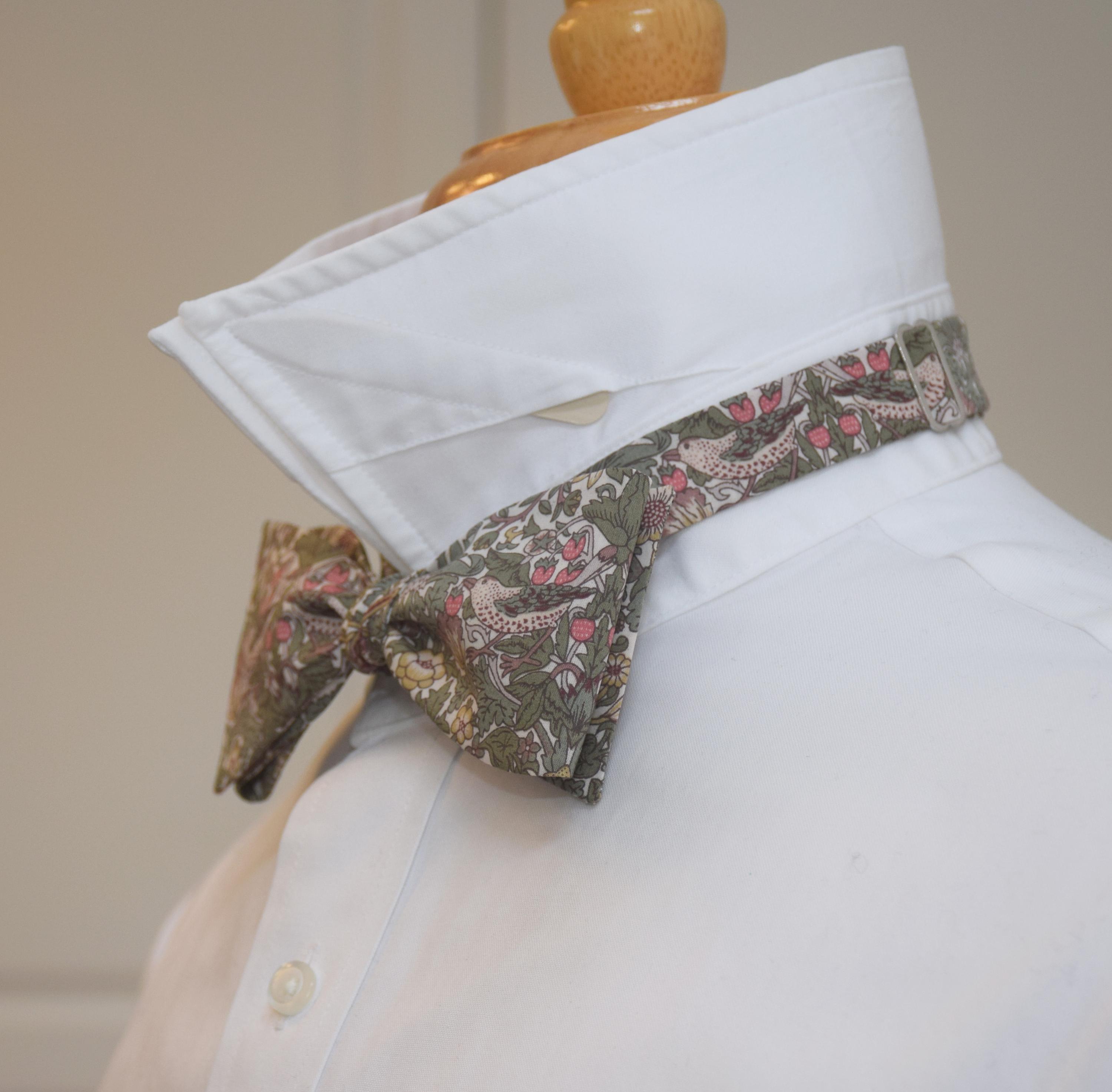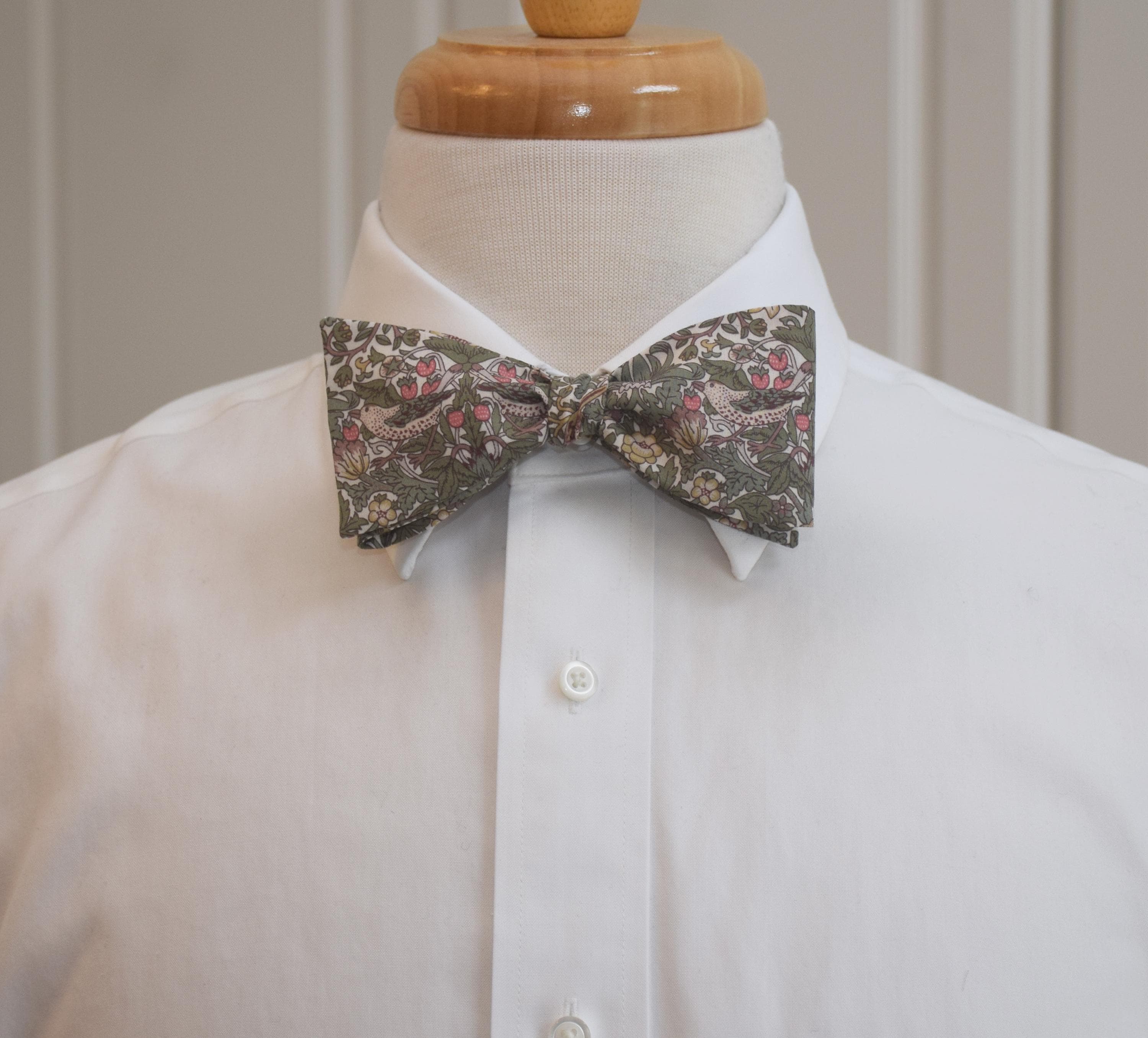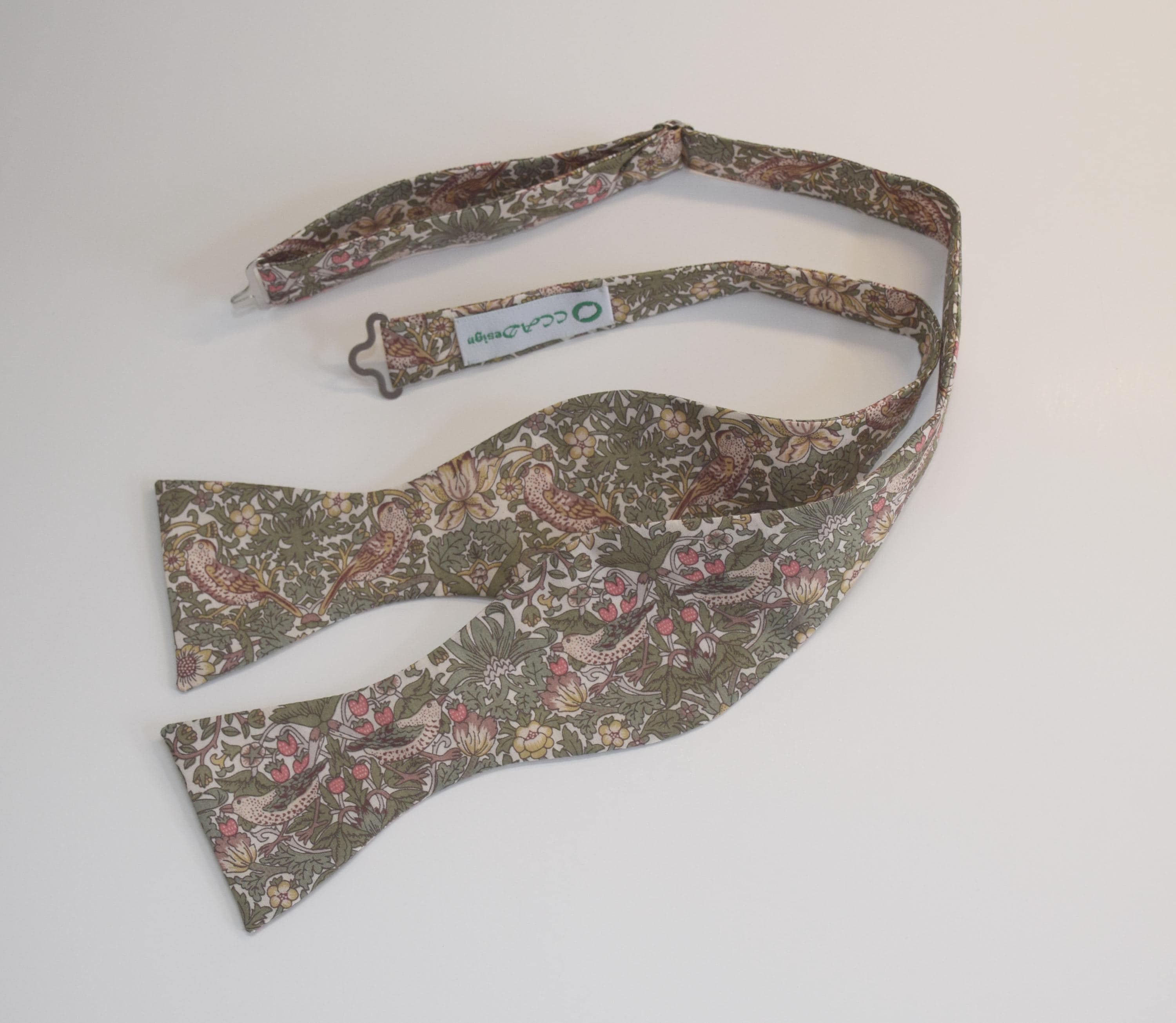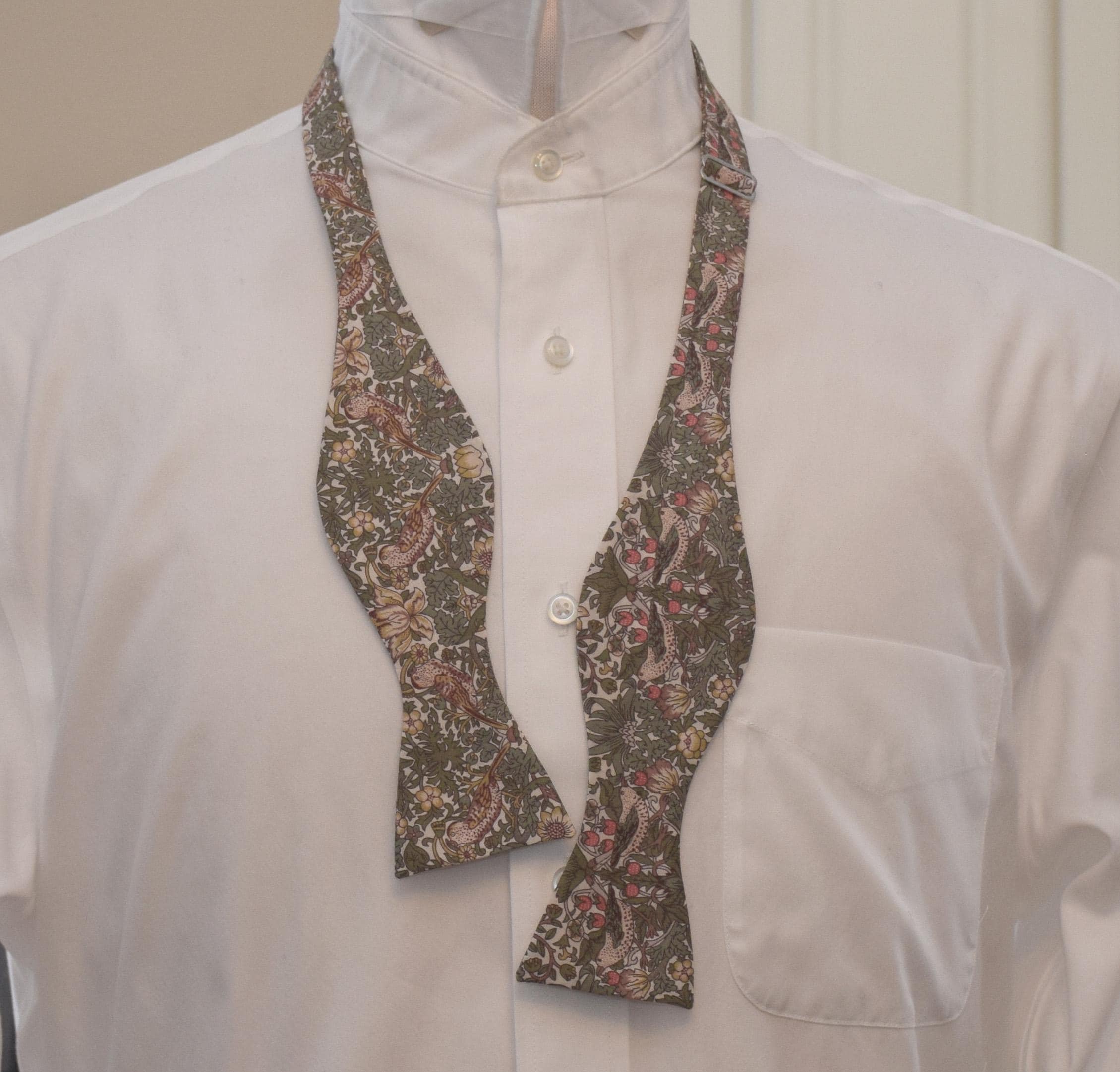 Liberty London Bow Tie: William Morris Strawberry Thief, sage/tan bird Print