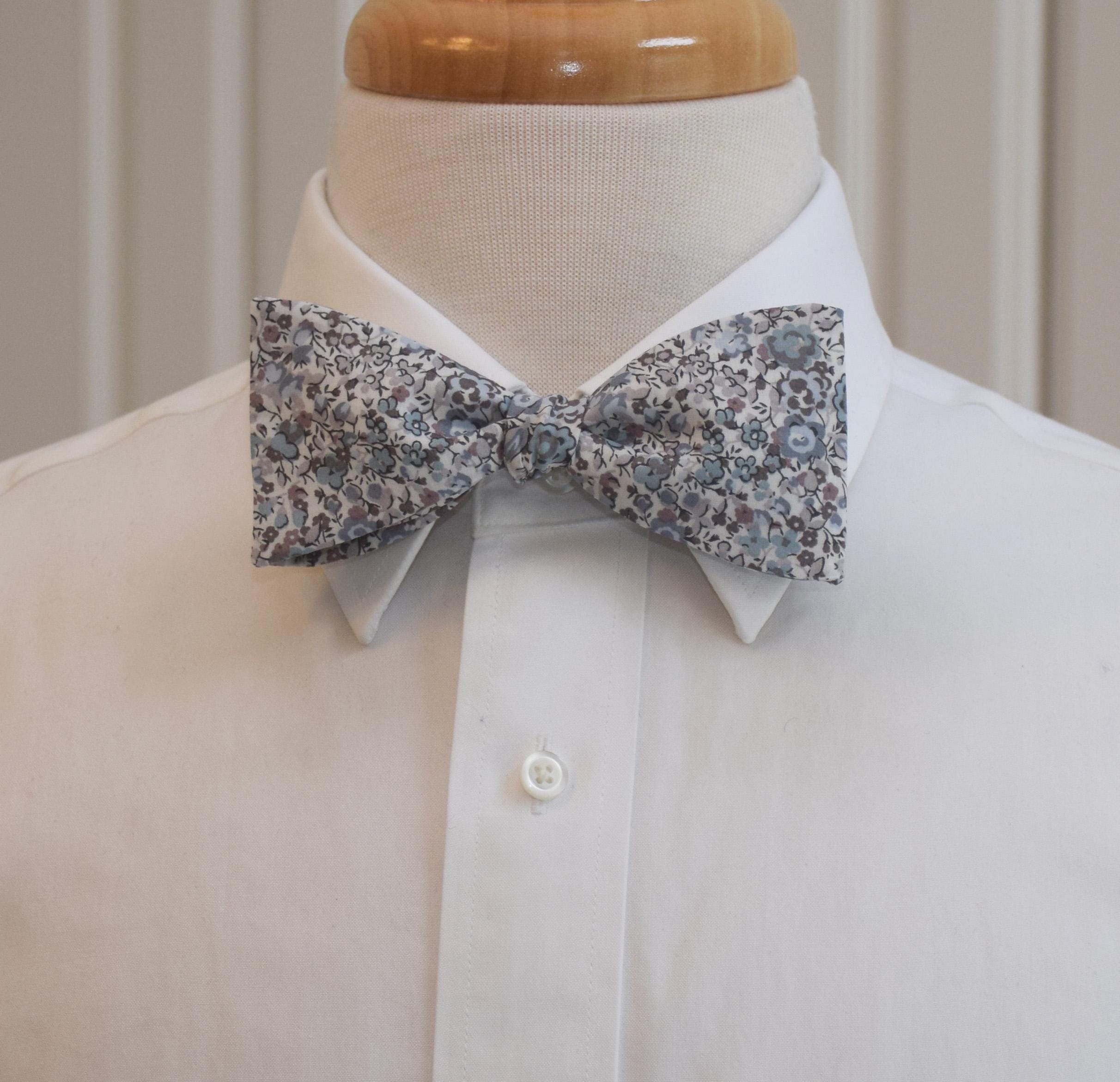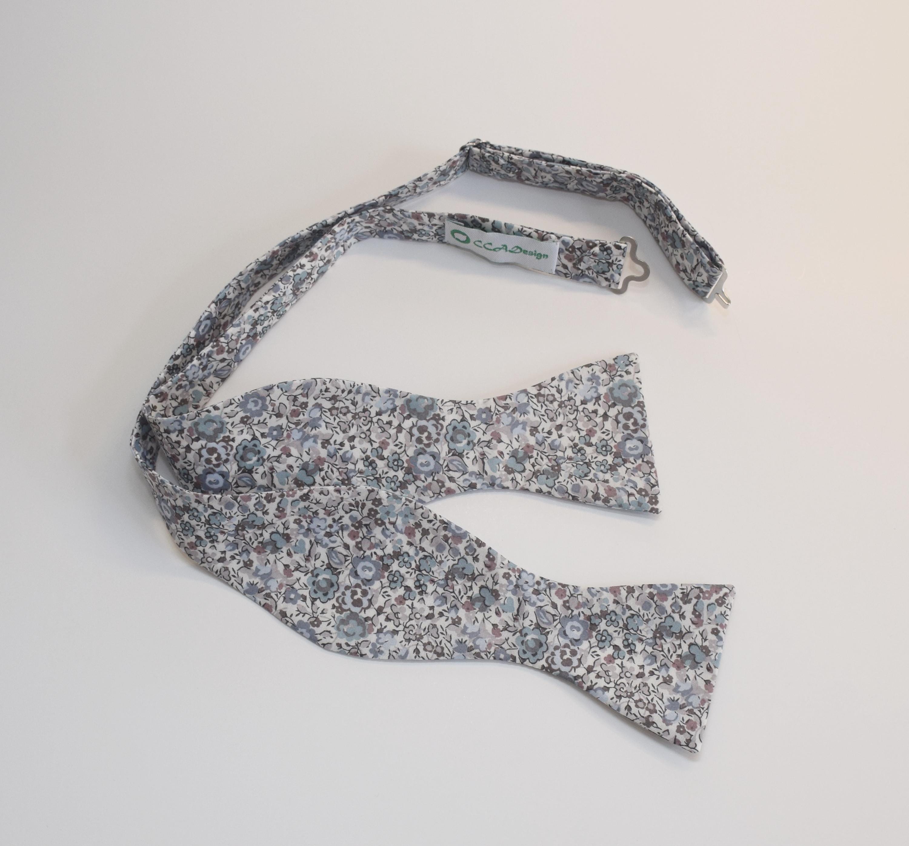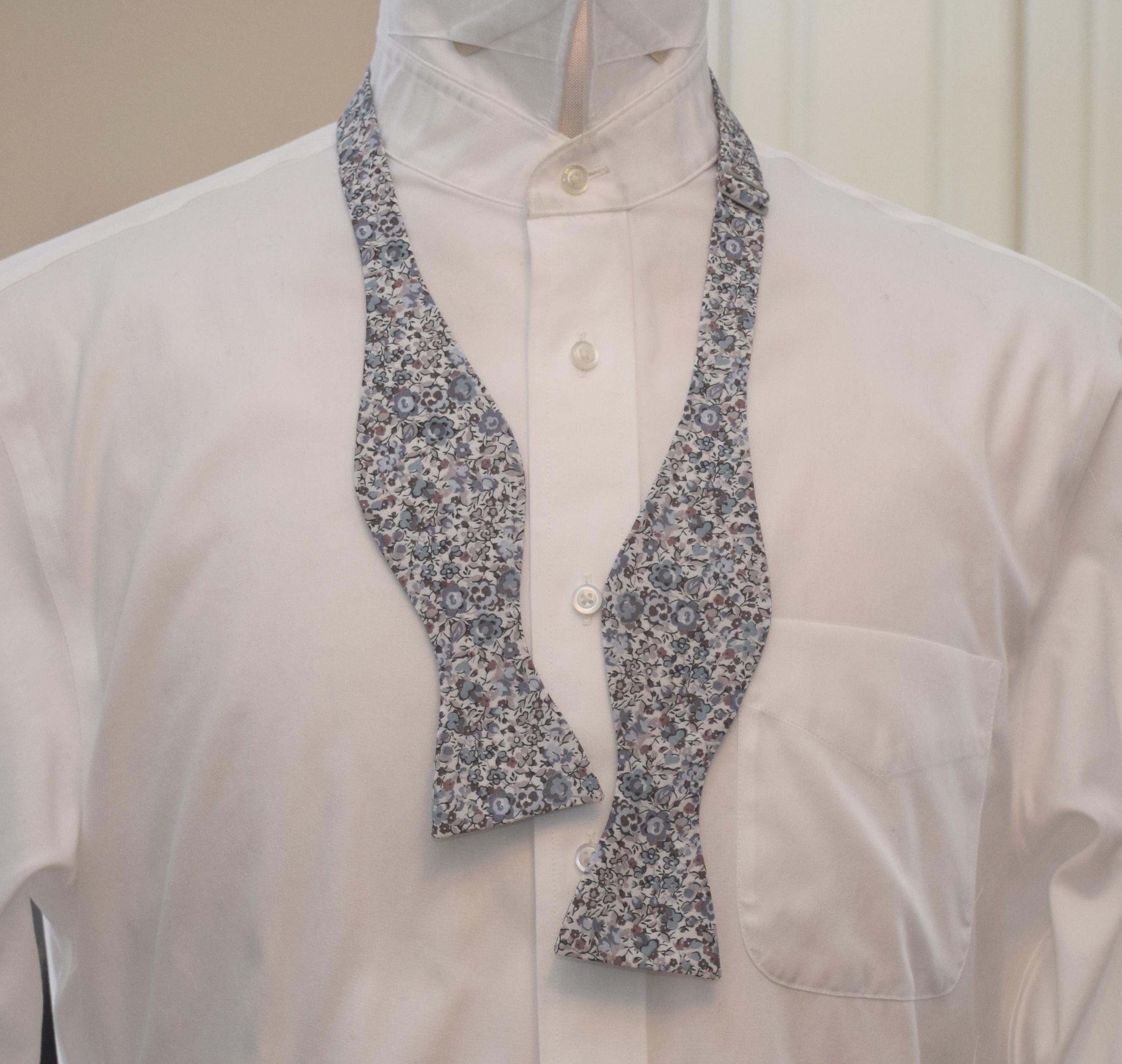 Liberty London Bow Tie: Emma & Georgina, blue/taupe/gray/ ivory Floral Print