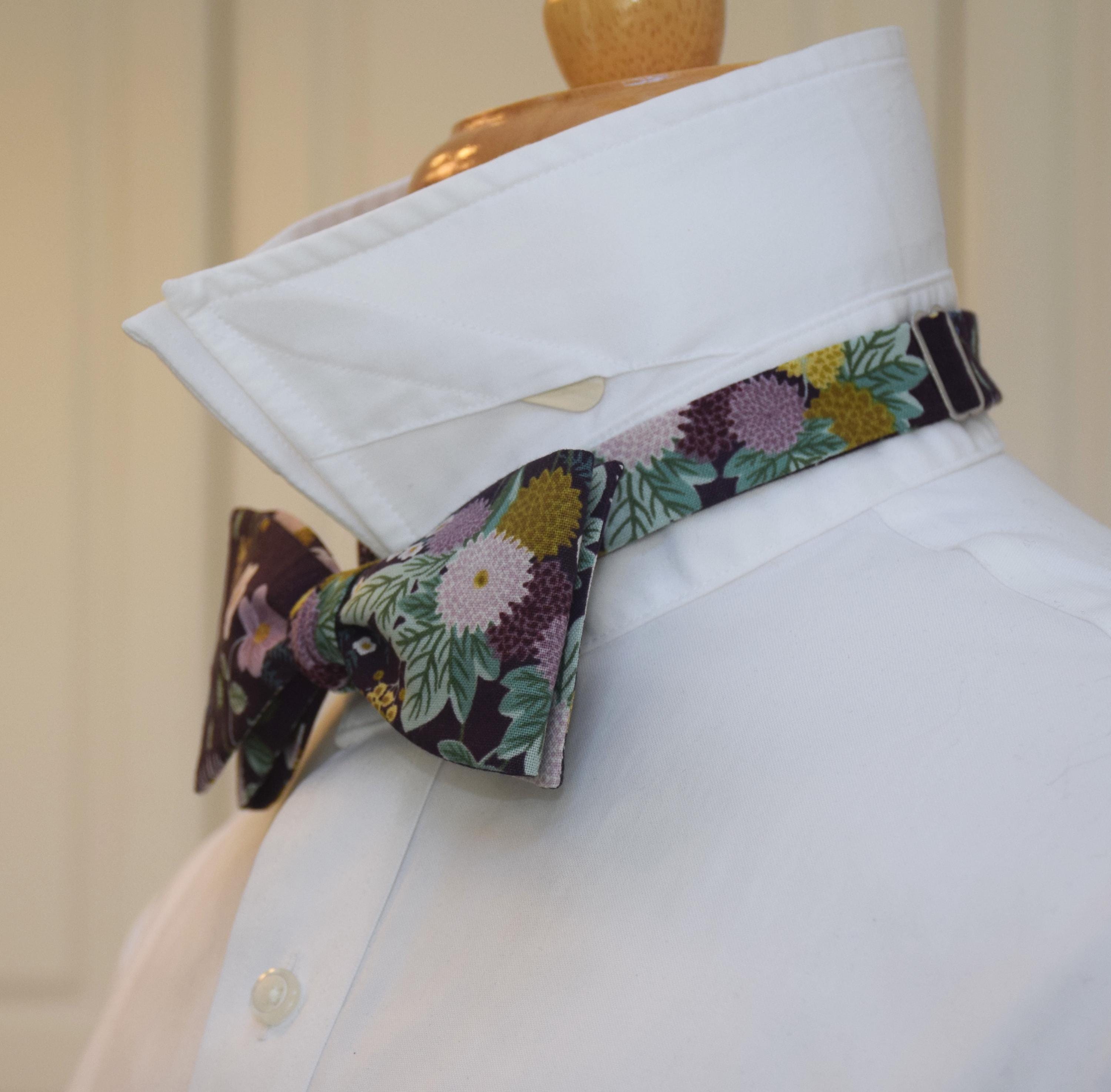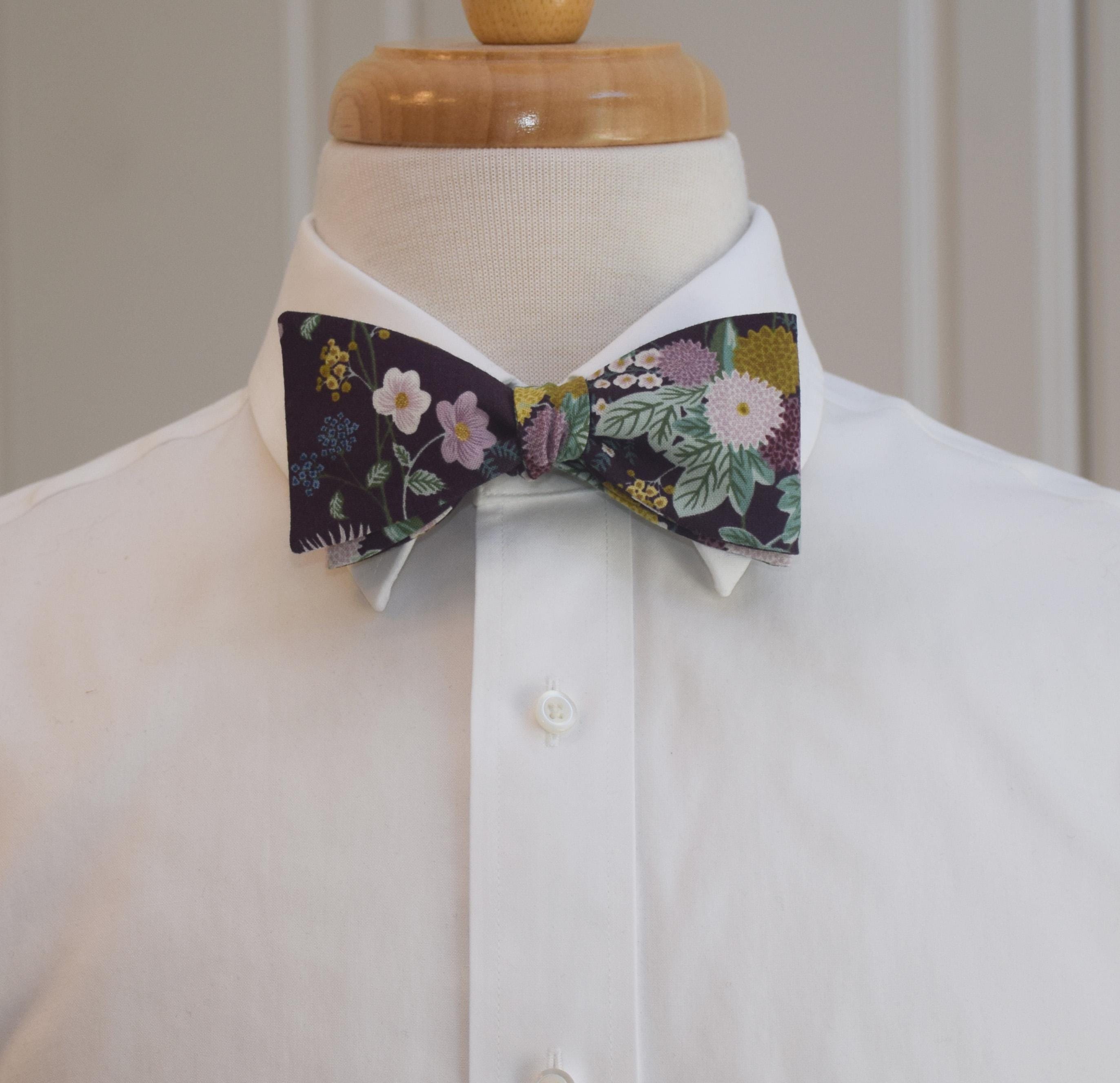 PLEASE NOTE: due to the scale and nature of the design, precise motif and color placement will vary from tie to tie - and also on how you tie the bow tie.
