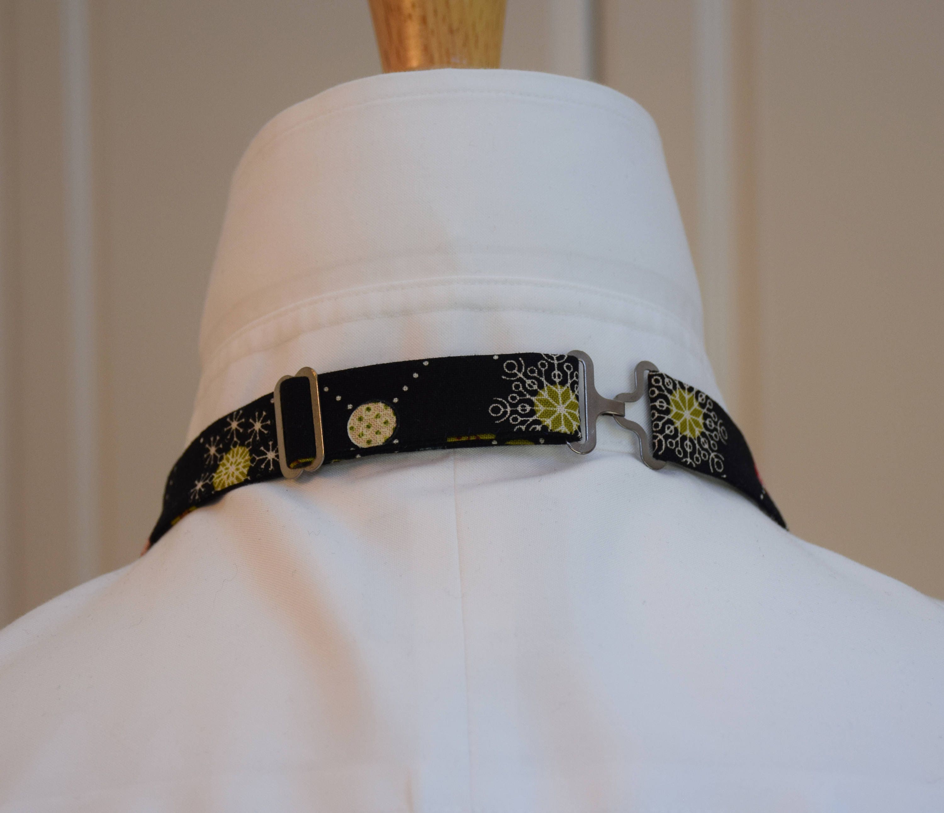 The self tie bow tie is made of 100% cotton and has a hook for easy removal that allows the tie to remain intact if you prefer not to tie it every time you wear it. Adjustable for neck sizes 14.5 - 19.5 inches.