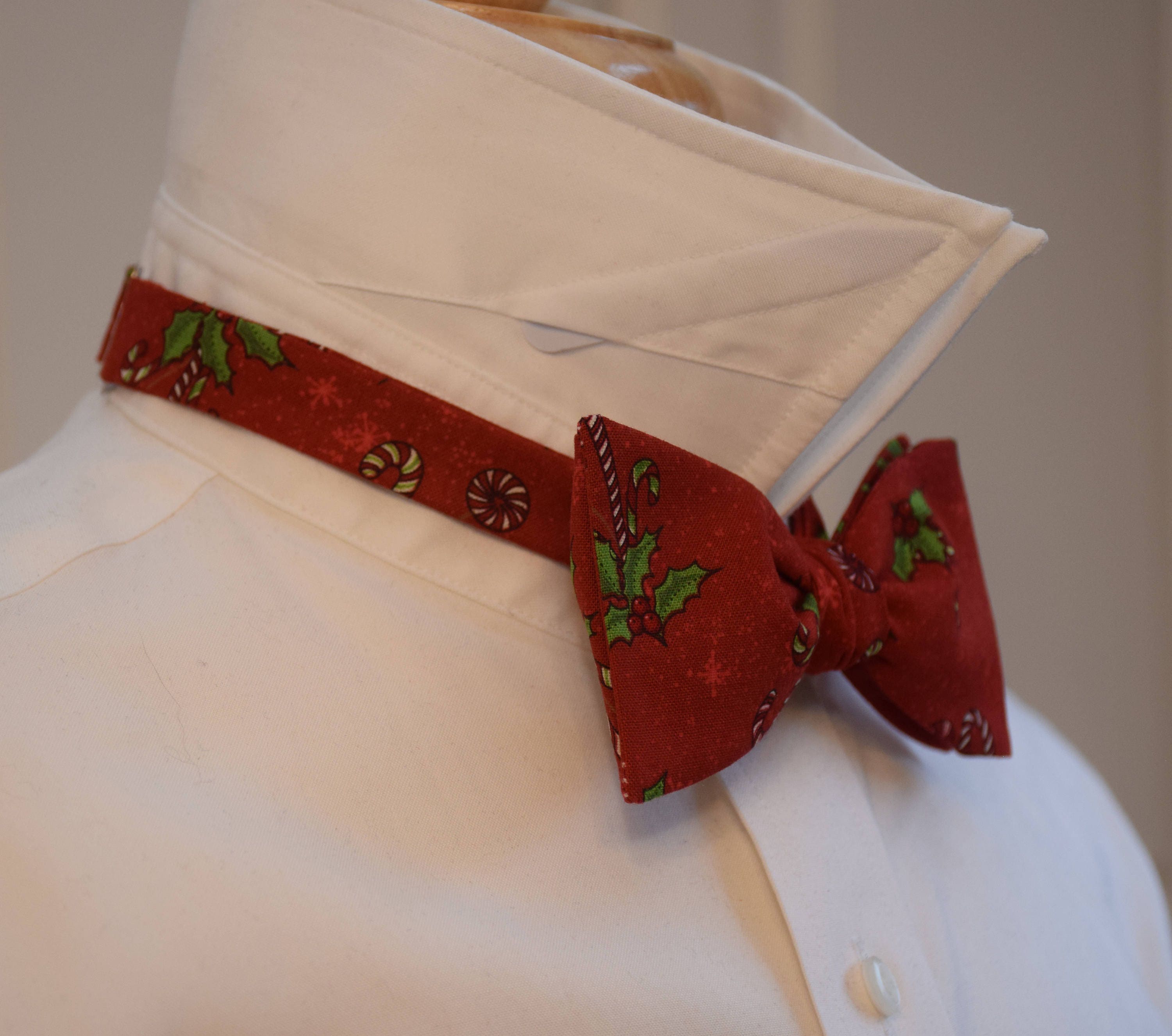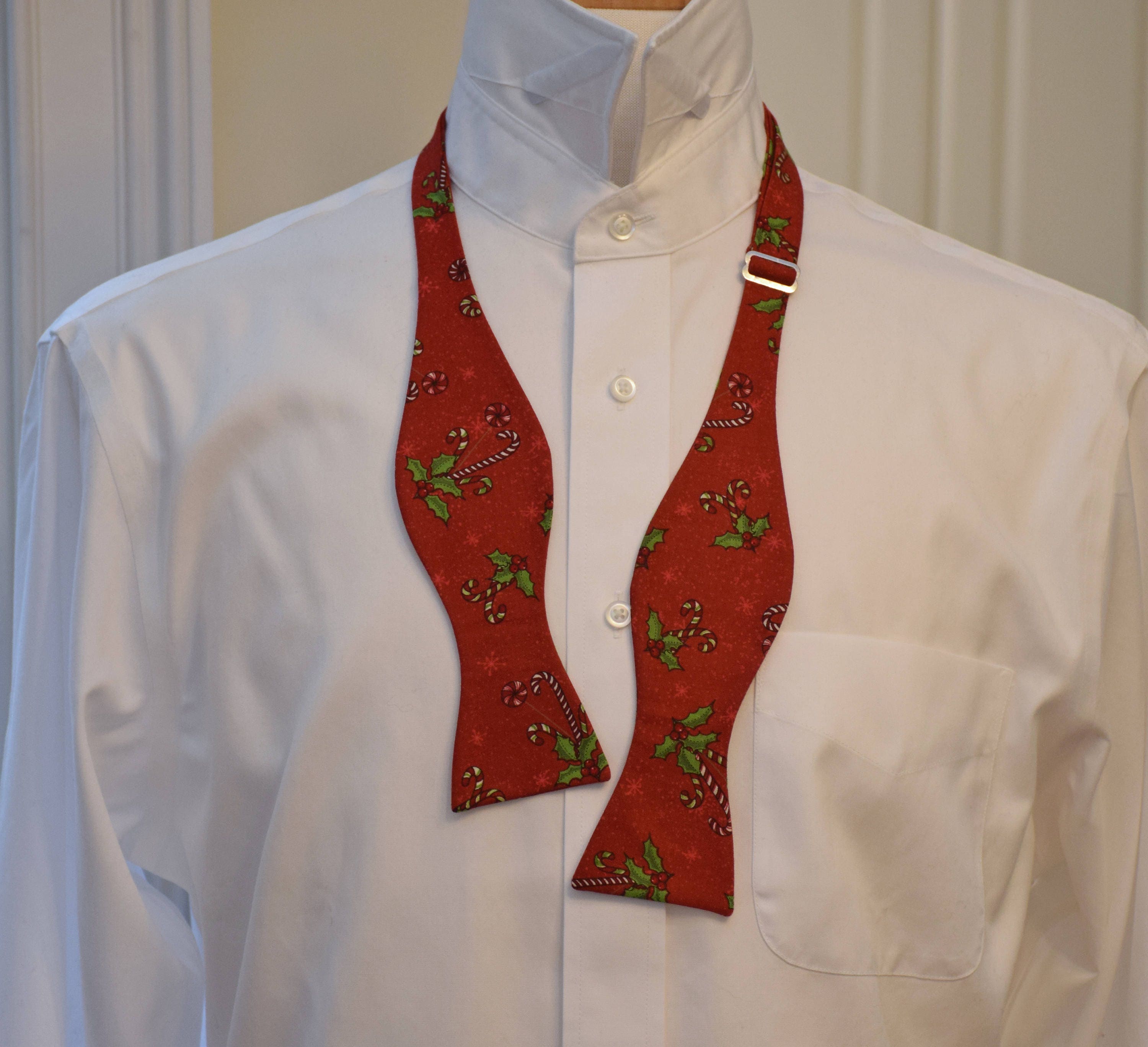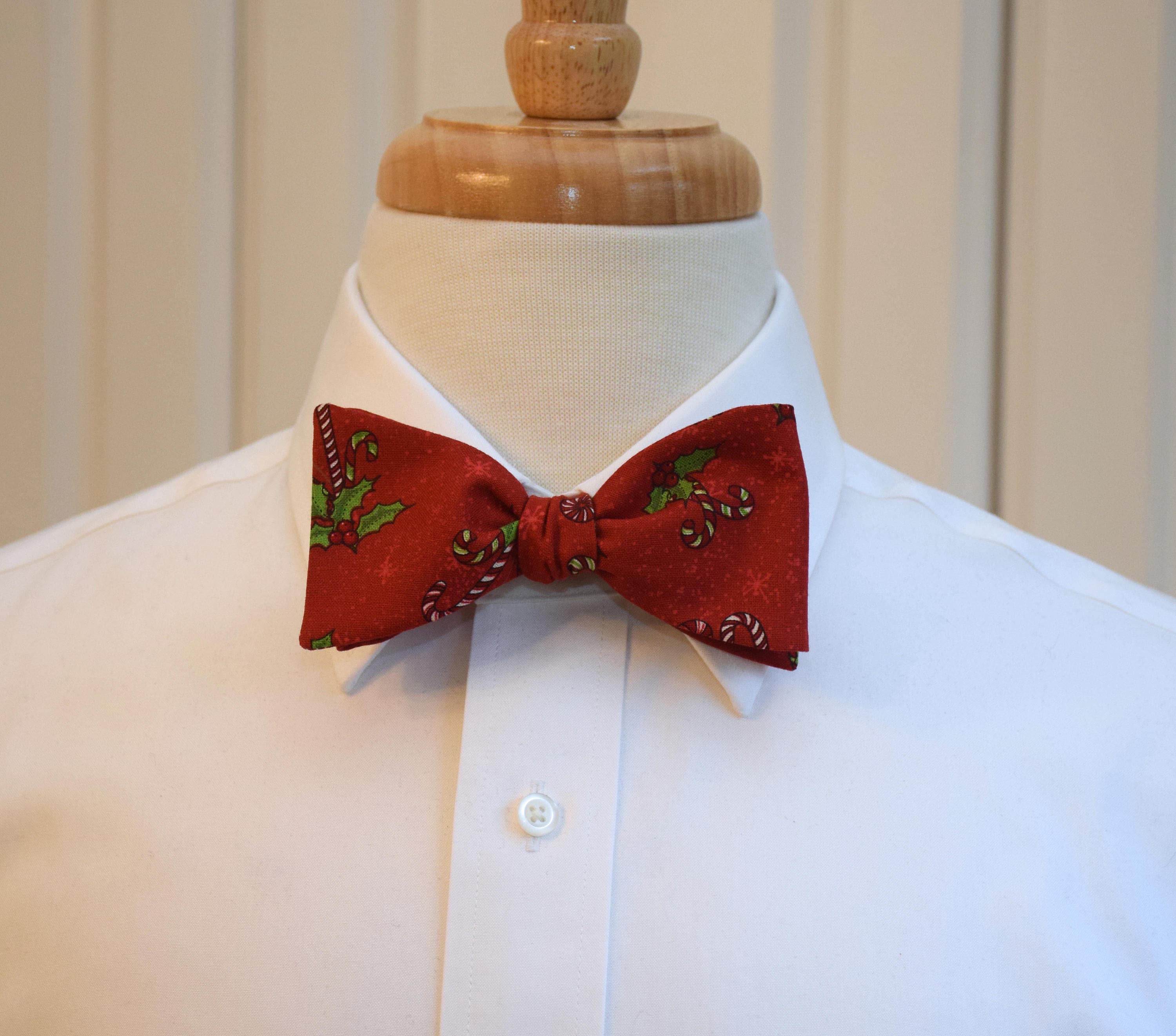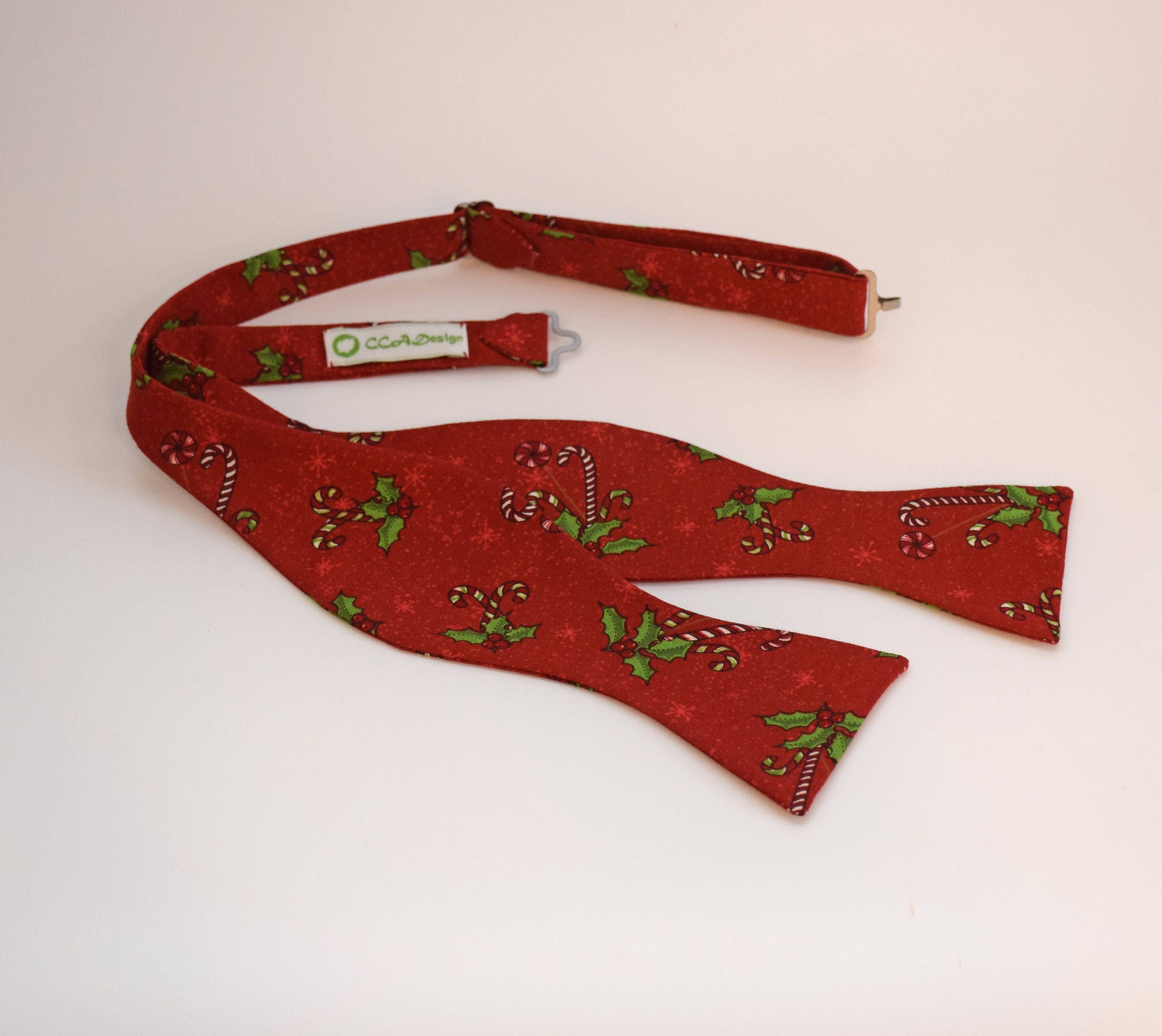 Bow Tie, red holly/candy cane bow tie, Christmas, holiday party bowtie
