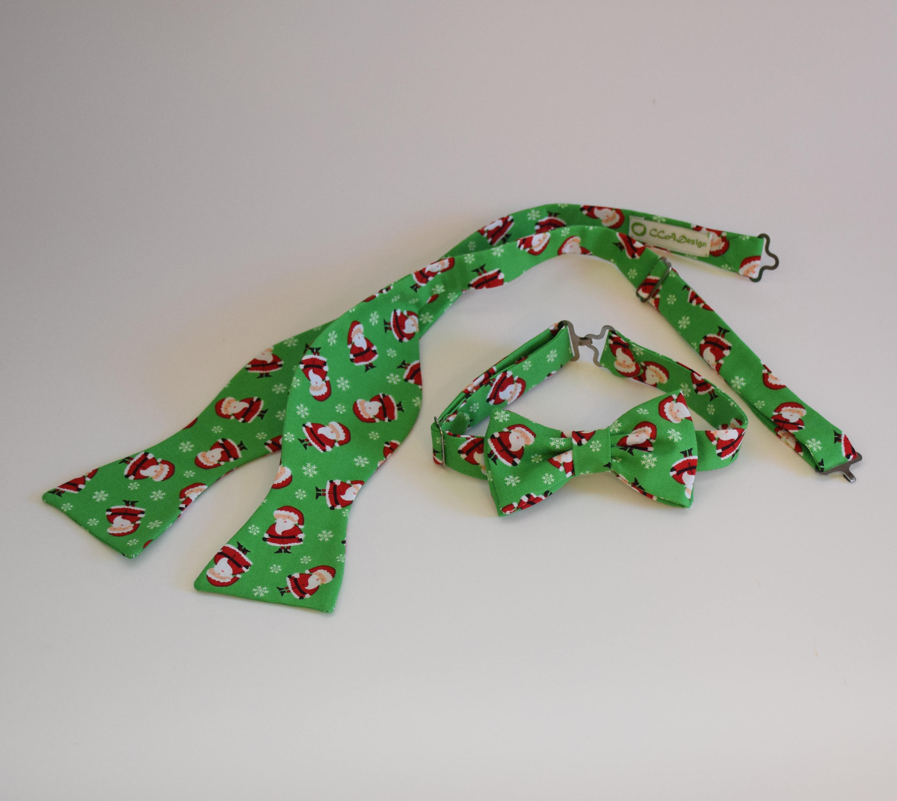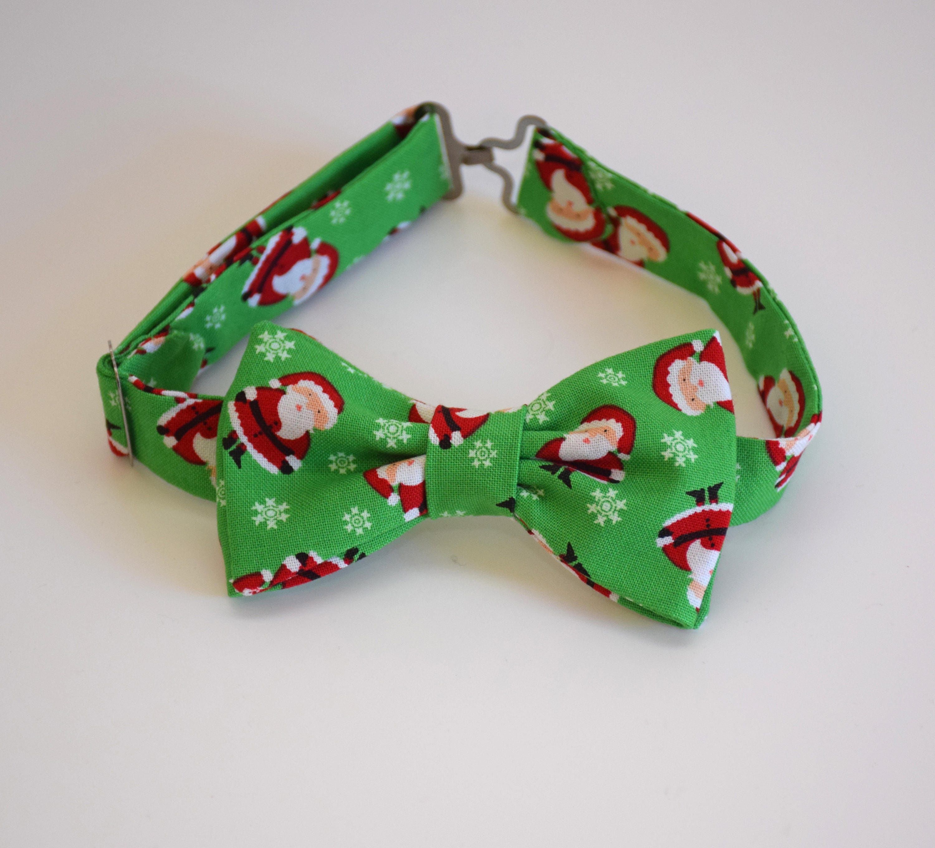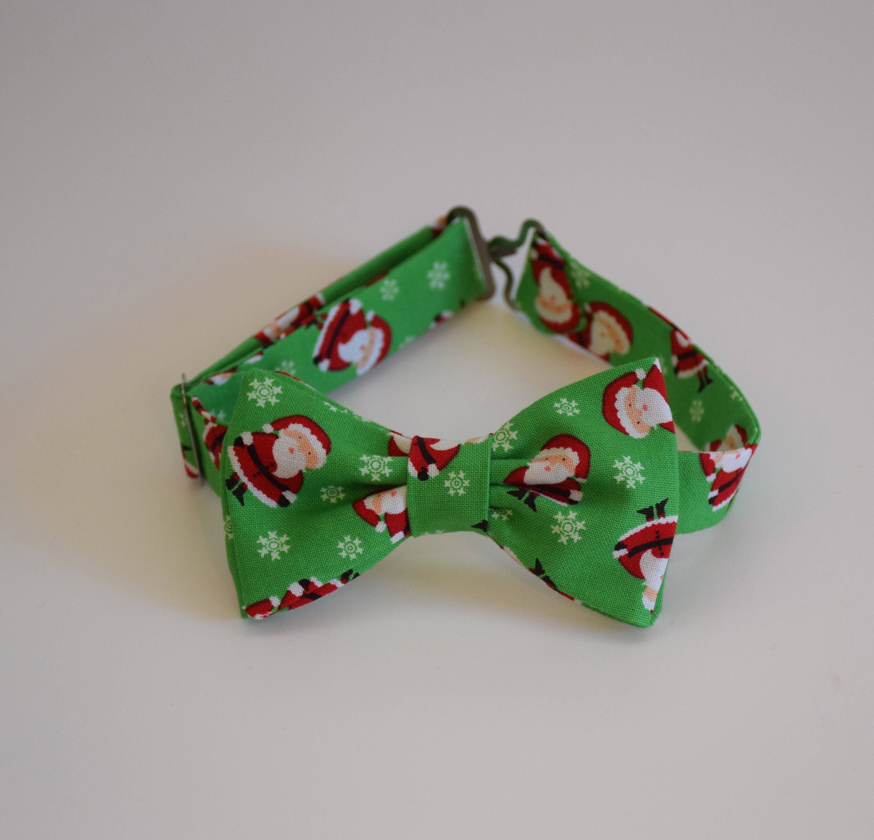 Boy's pre-tied Bow Tie, Christmas green/red Santa Claus bow tie, toddler bowtie