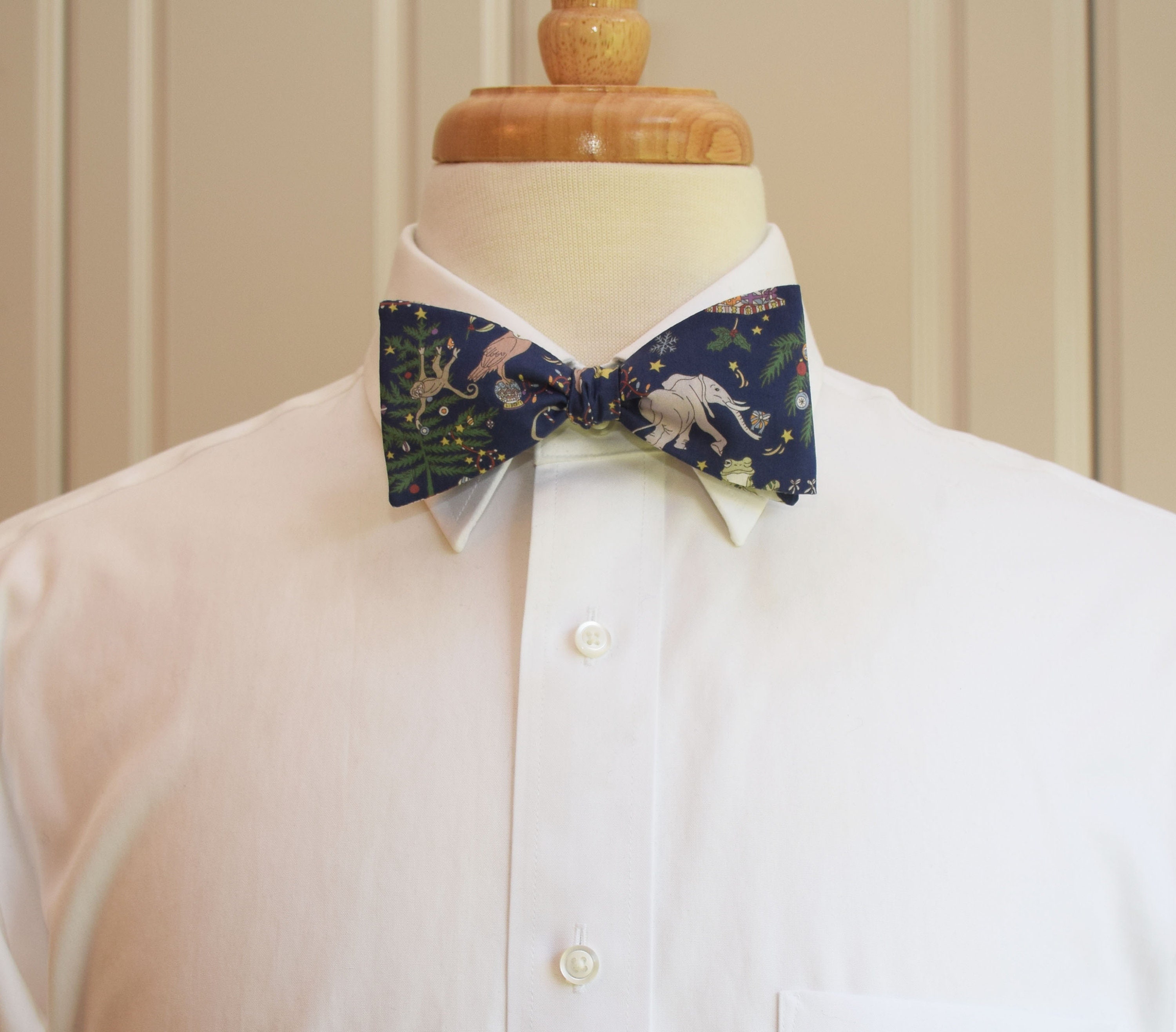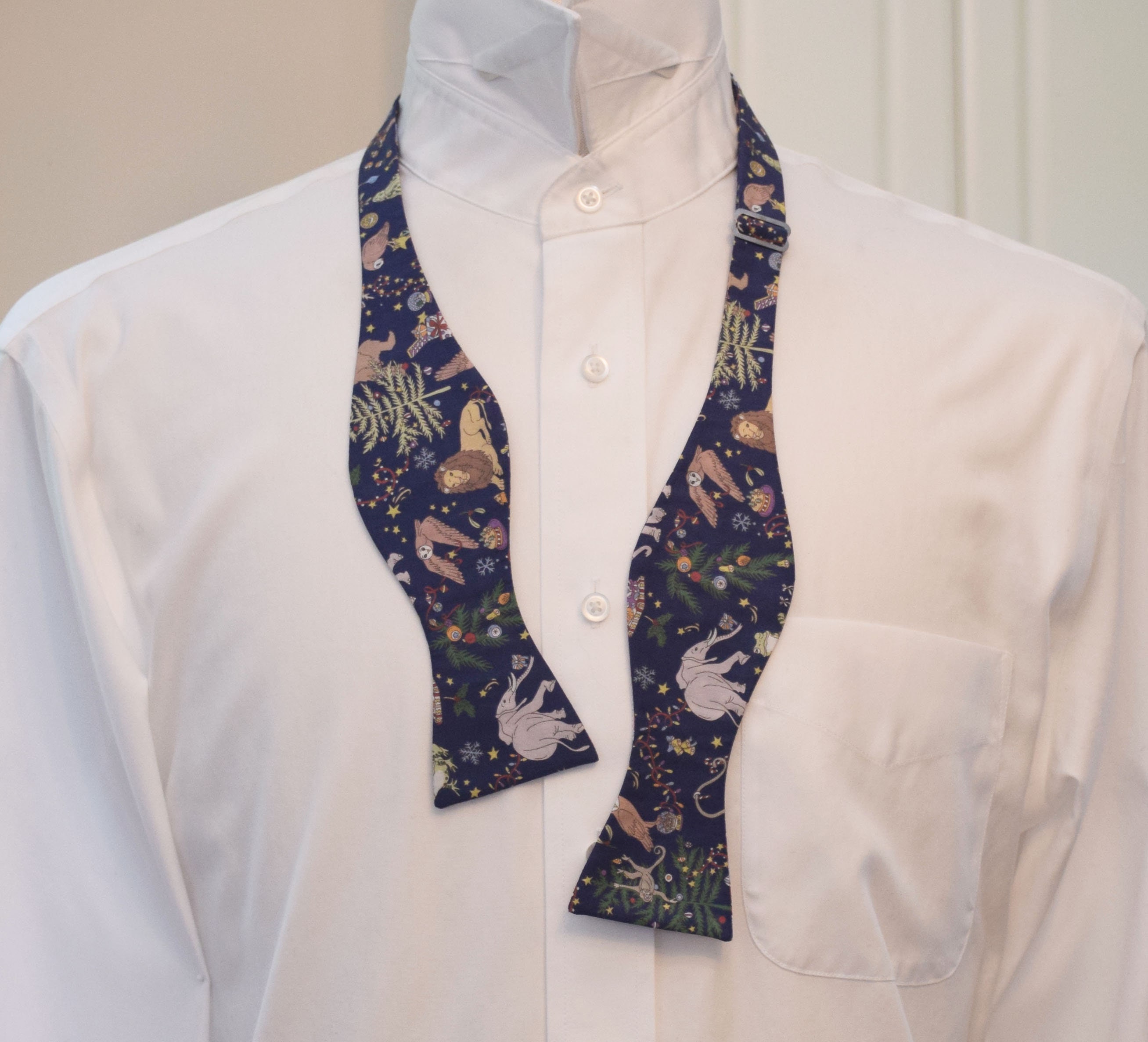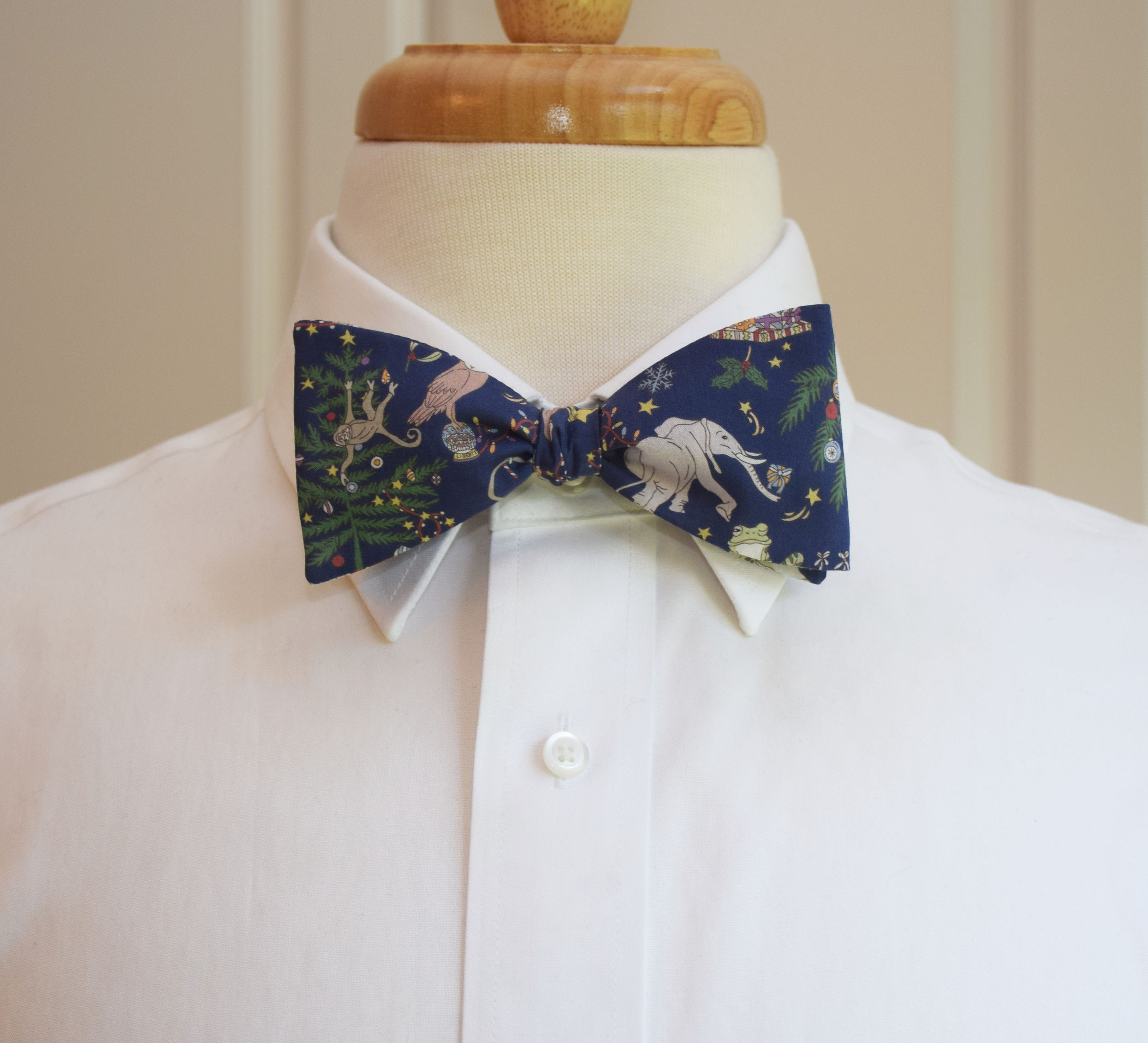 Bow Tie, Liberty of London navy Christmas print, animals bow tie, veterinarian, animal lover,