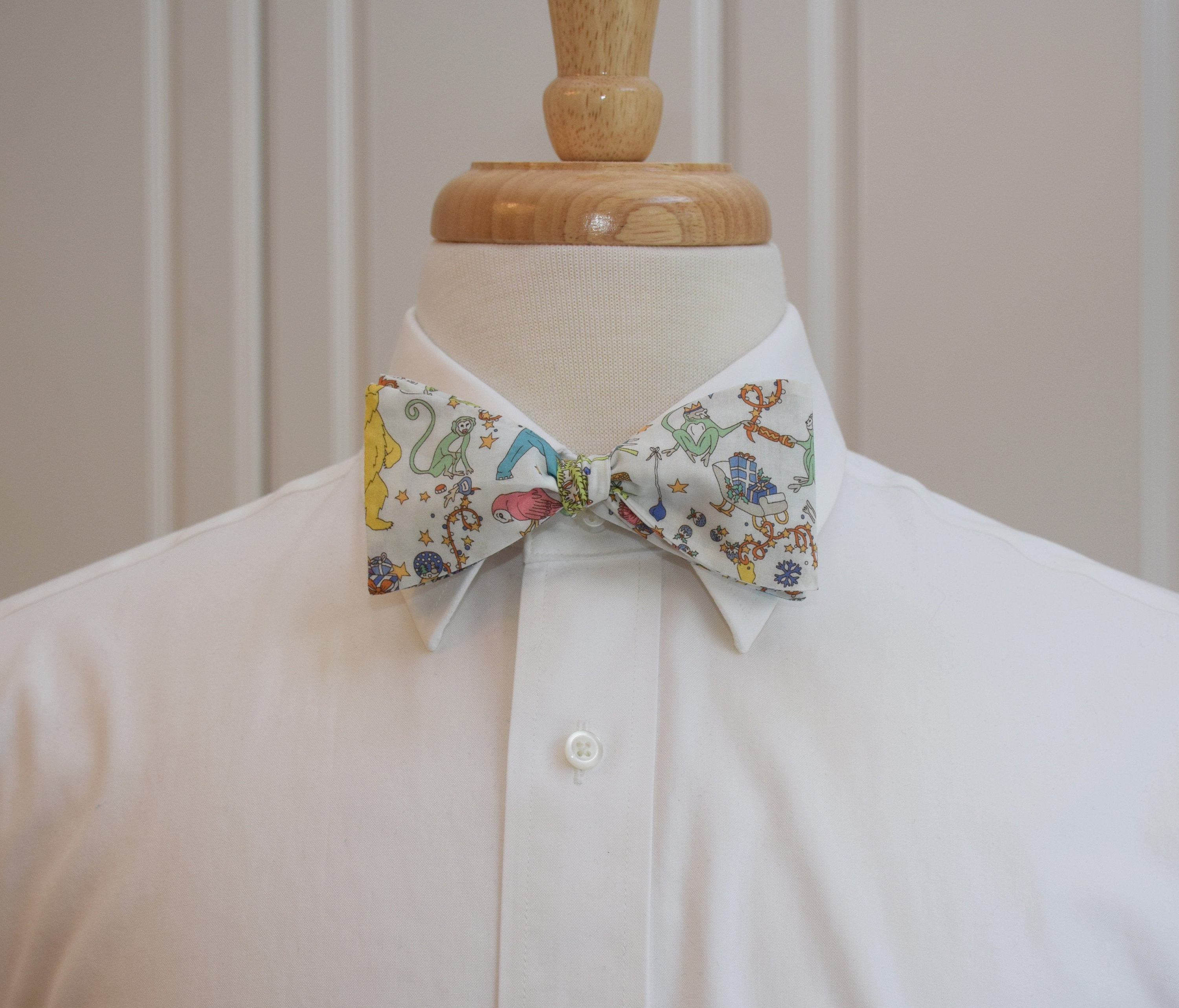 Bow Tie, Liberty Christmas bow tie, ivory/cream multi, holidays, whimsical, animals